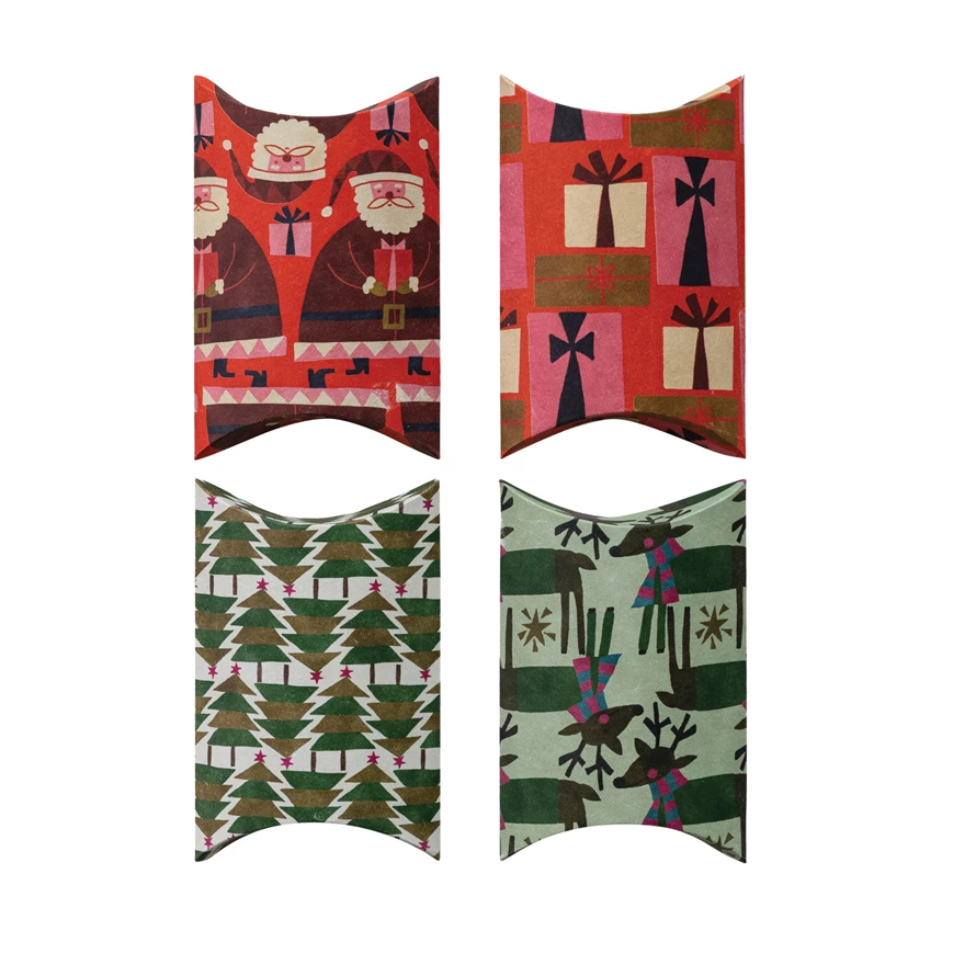 Handmade Printed Recycled Paper Pillow Gift Box with Holiday Pattern, 4 Styles ©