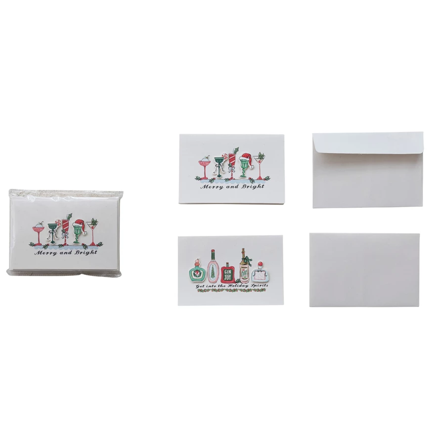 Catalog Name: 6"L x 4"W Handmade Printed Recycled Paper Christmas Cards w/ Cocktails & 6 Envelopes, Multi Color, Set of 6, 2 Styles (Blank Inside) ©