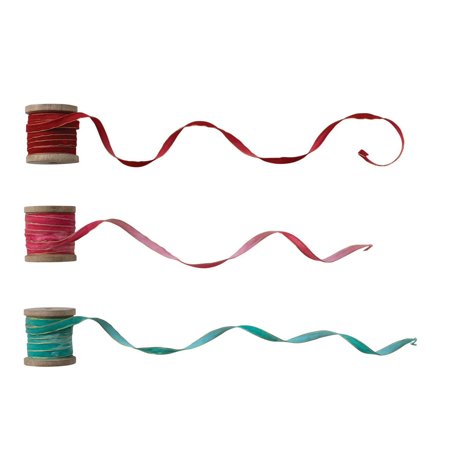 Catalog Name: 10 Yard 1/4"W Velvet Ribbon w/ Metallic Gold Edges on Wood Spool, 3 Colors