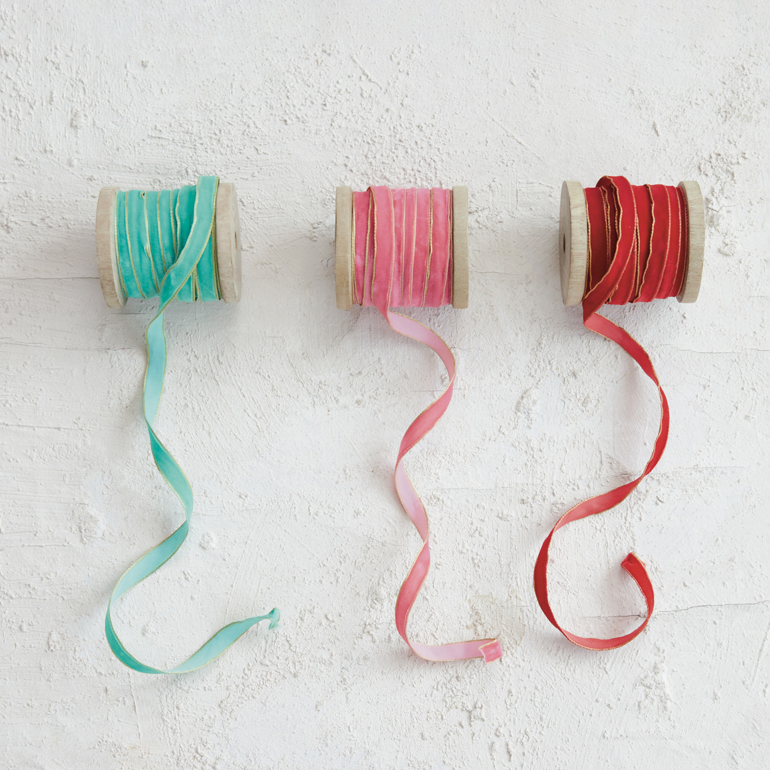 10 Yard 1/4"W Velvet Ribbon with Metallic Gold Edges on Wood Spool, 3 Colors