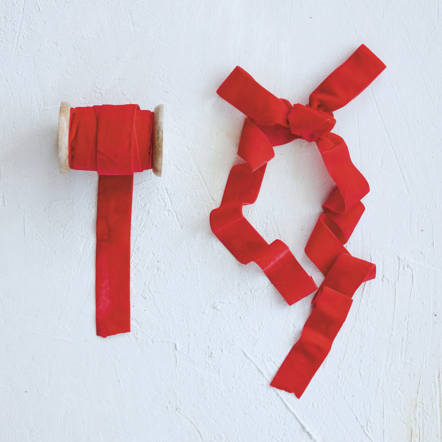 5 Yard 1-1/2"W Velvet Ribbon on Wood Spool, Red