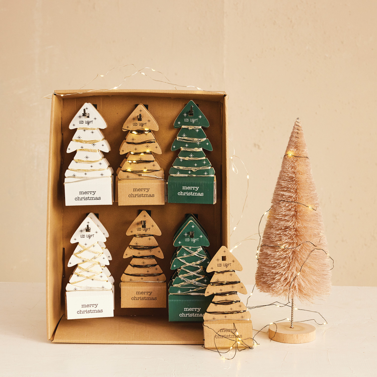 118"L LED String Lights on Tree Shaped Display Cards, 3 Styles