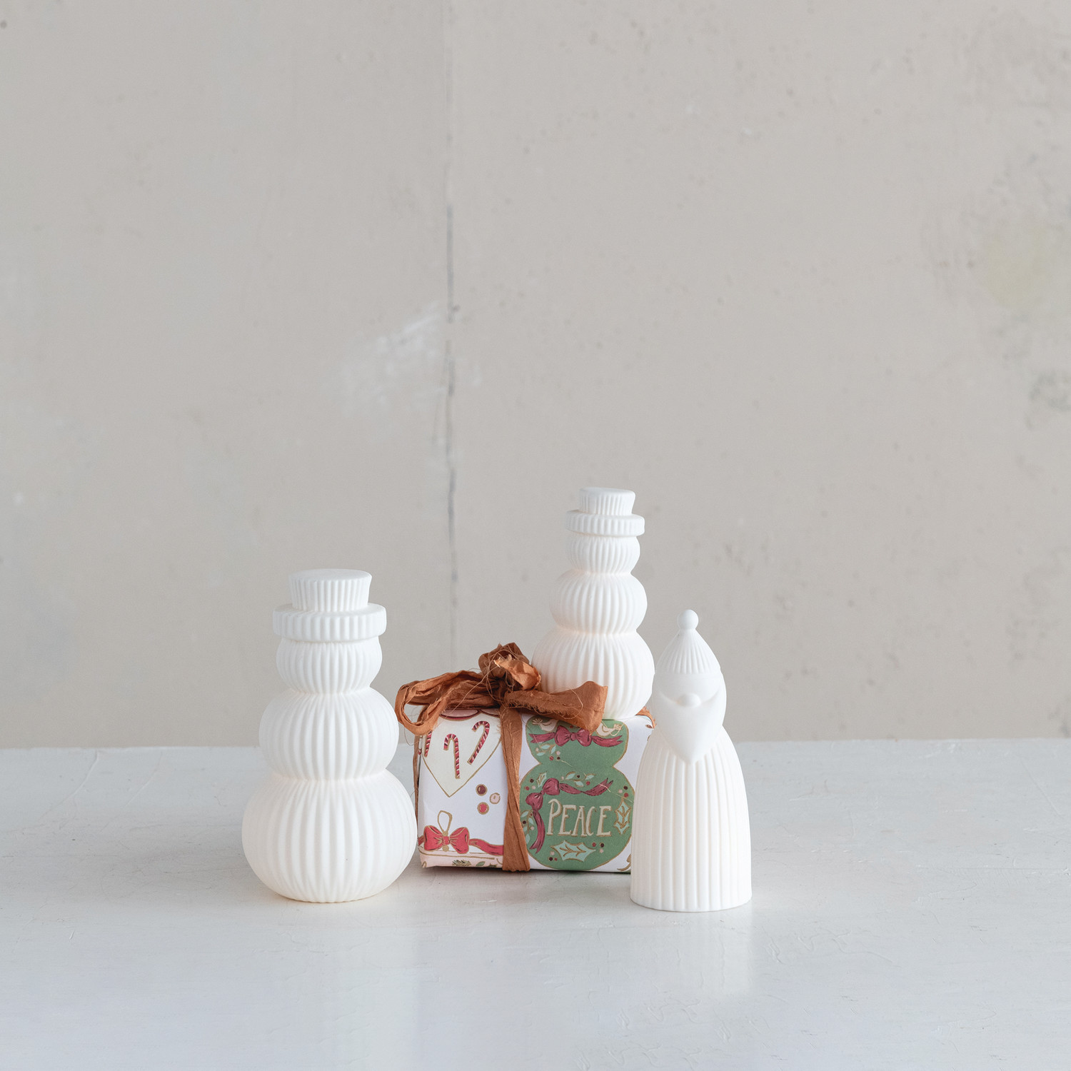 Catalog Name: 3" Round x 5"H Stoneware Bisque Snowman Shaped LED Light, White (Batteries Included)