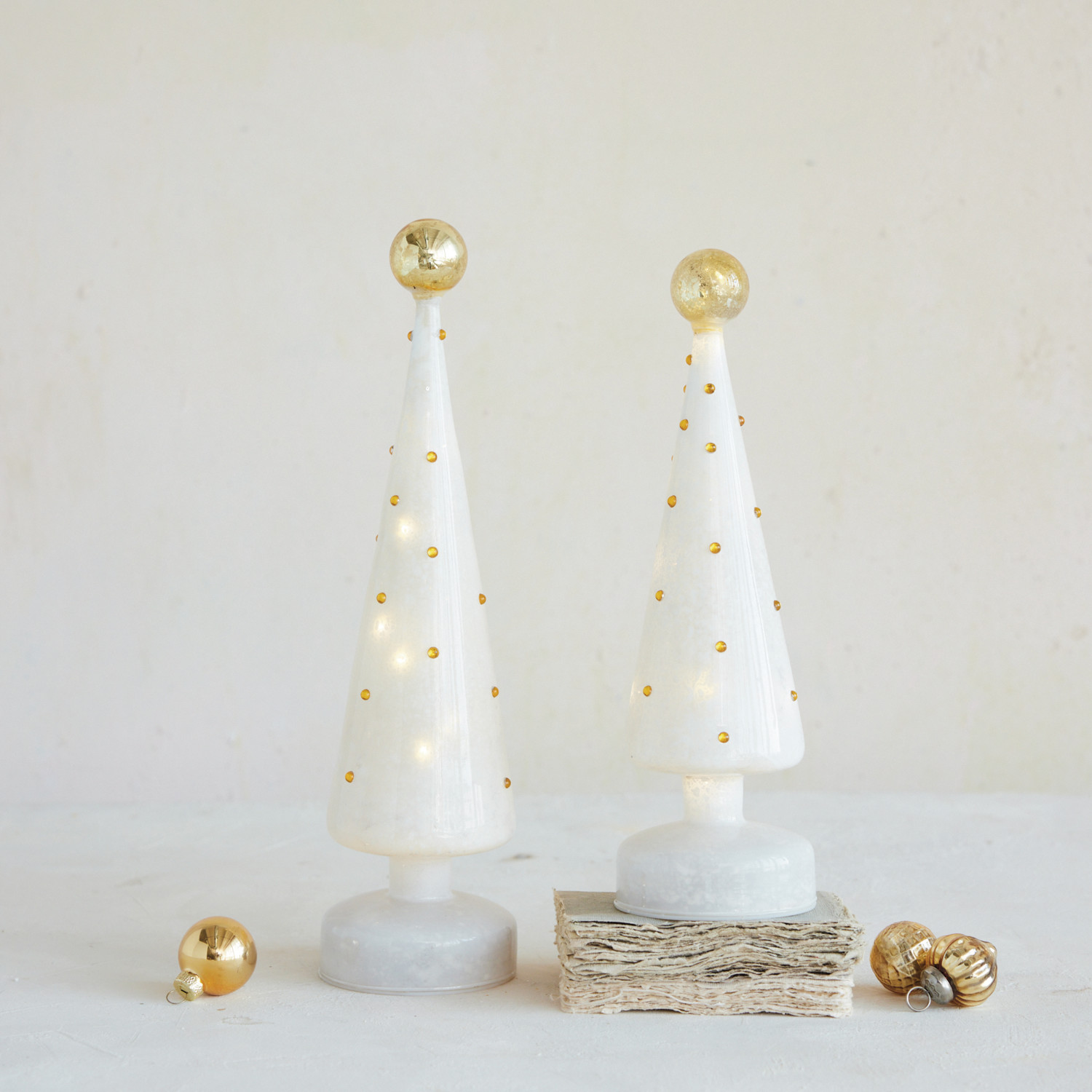 Mercury Glass Tree with Embossed Dots & LED Light, Gold Finish & White
