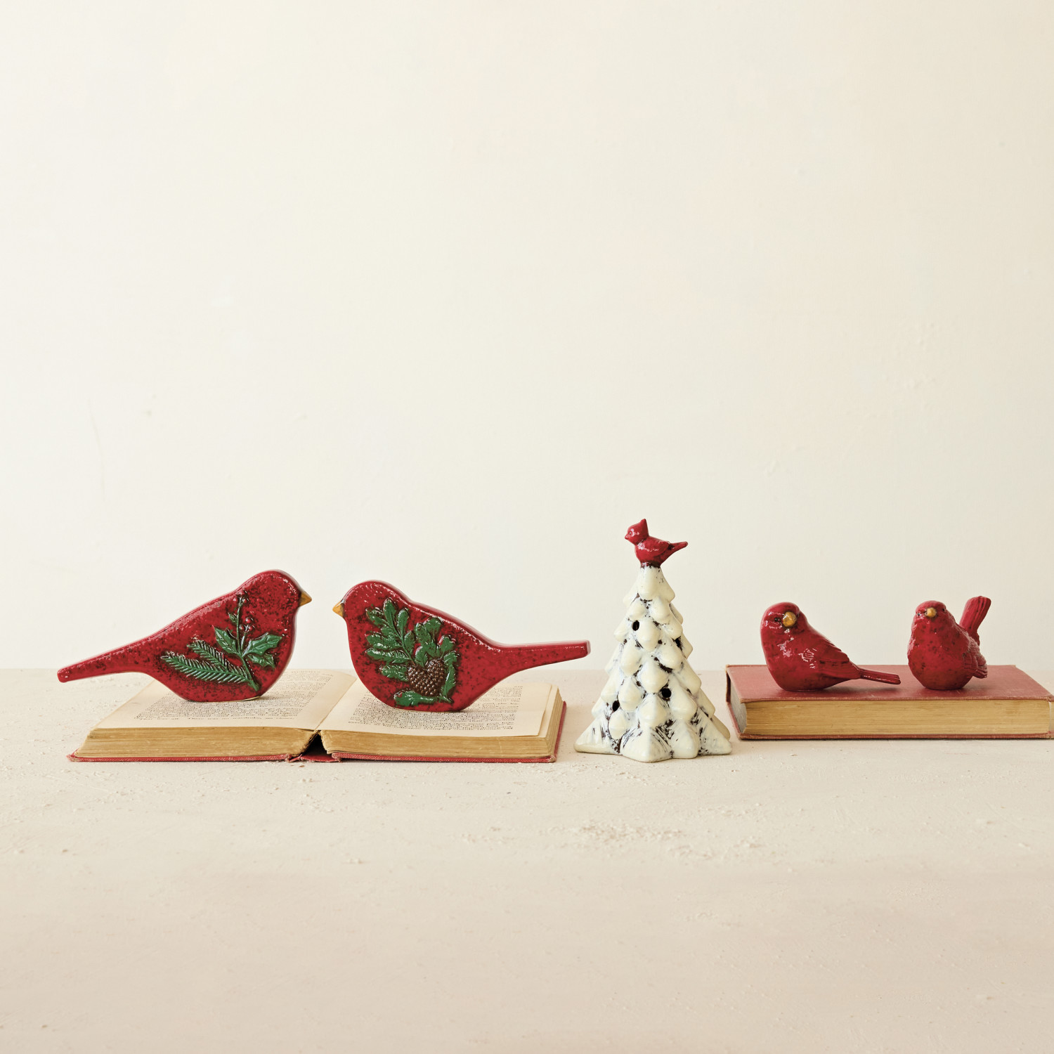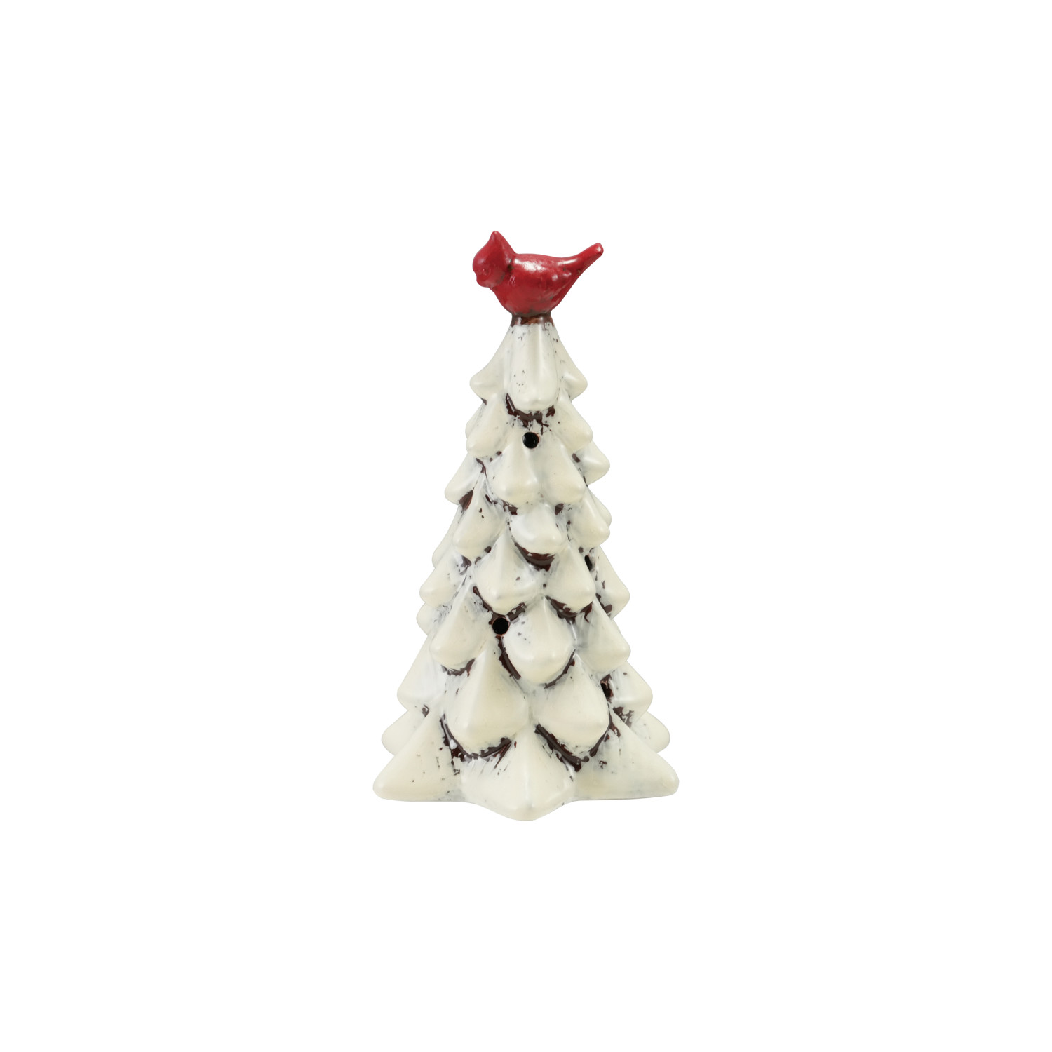 Catalog Name: 3-1/2" Round x 6"H Hand-Painted Ceramic Tree w/ Cardinal & LED Light, Reactive Glaze, White, Red & Green (Batteries Included) (Each One Will Vary)