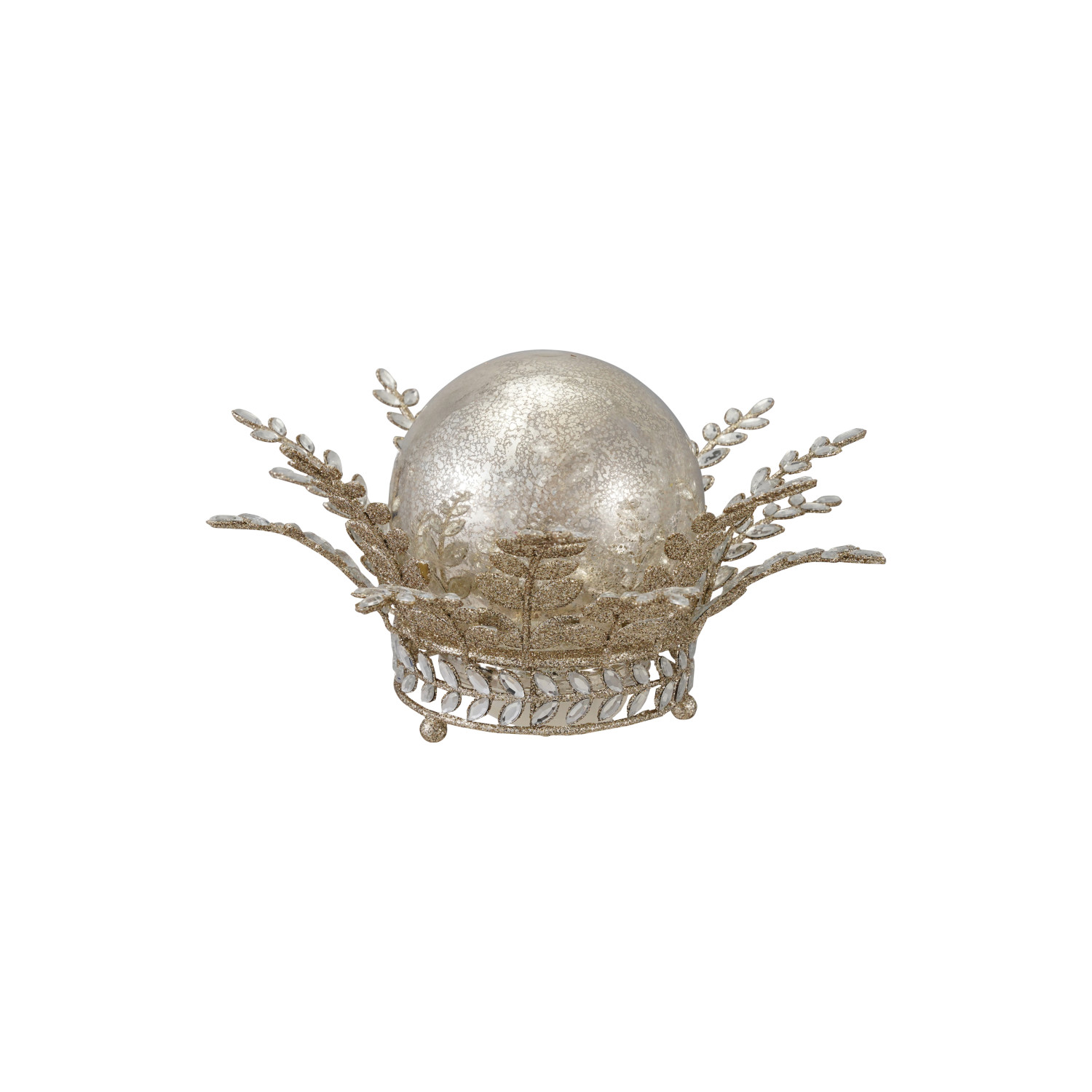 Catalog Name: 13-1/2" Round x 6-1/2"H Metal Stand w/ Acrylic Jewels, Glitter & Mercury Glass LED Orb Light, Champagne Finish (Requires 3-AA Batteries)