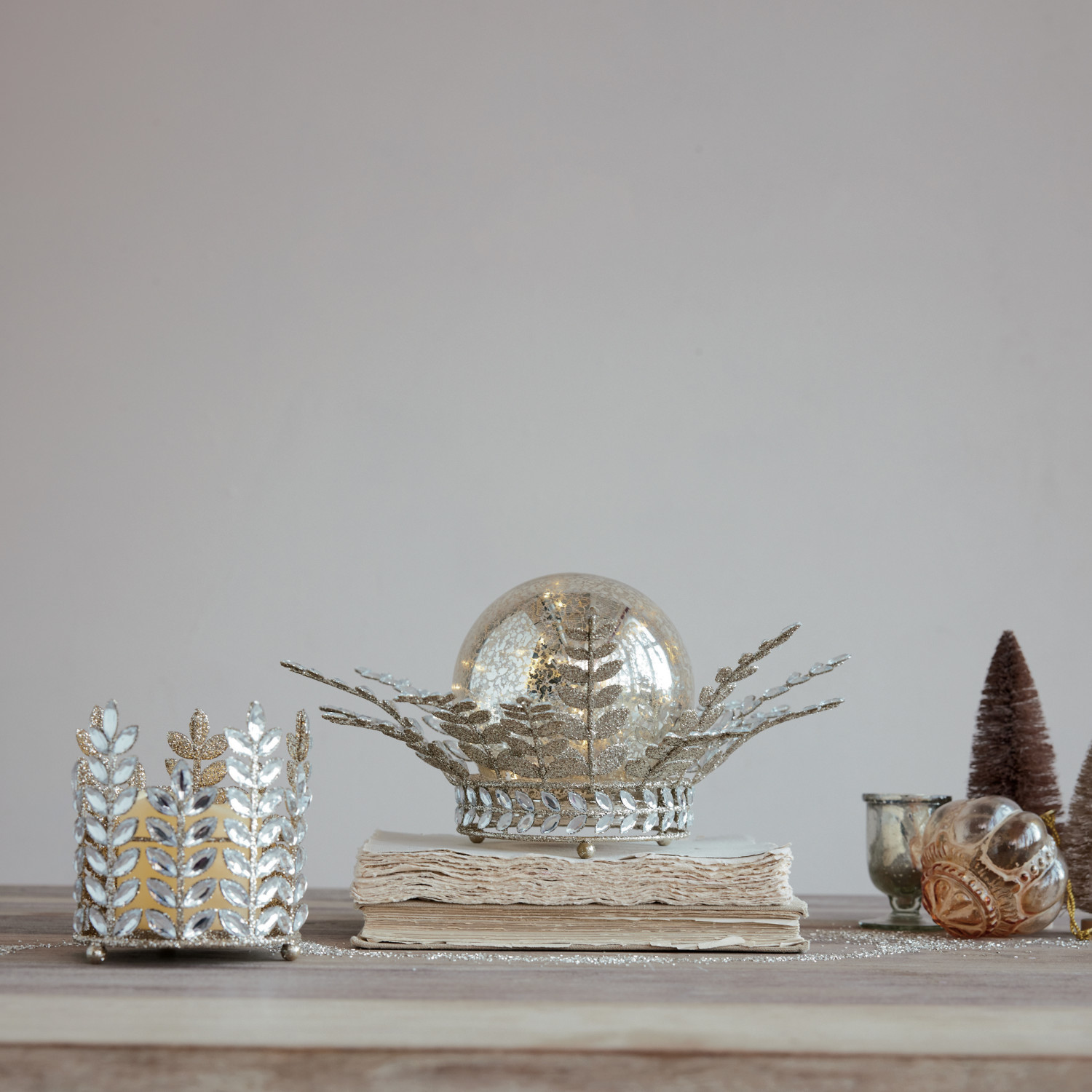 Metal Stand with Acrylic Jewels, Glitter & Mercury Glass LED Orb Light