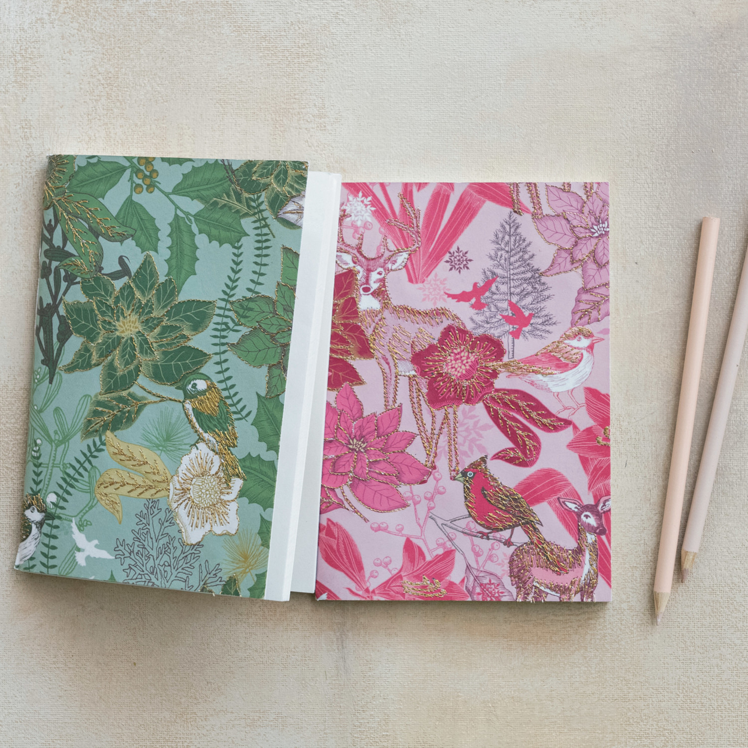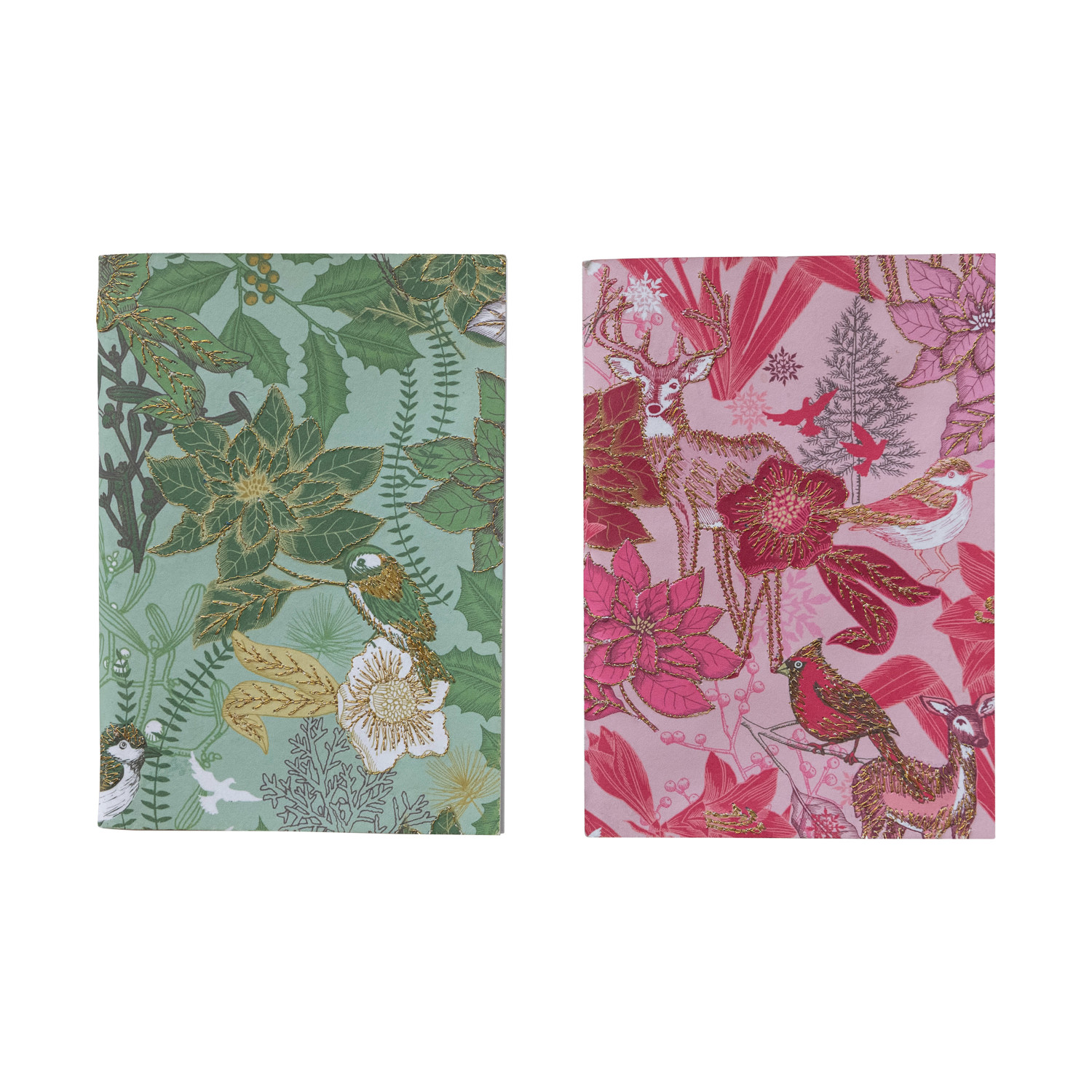 Catalog Name: 7"L x 5"W Printed Recycled Paper Soft Cover Notebook w/ Flora/Fauna Pattern & Embroidery, Multi Color, 2 Styles ©