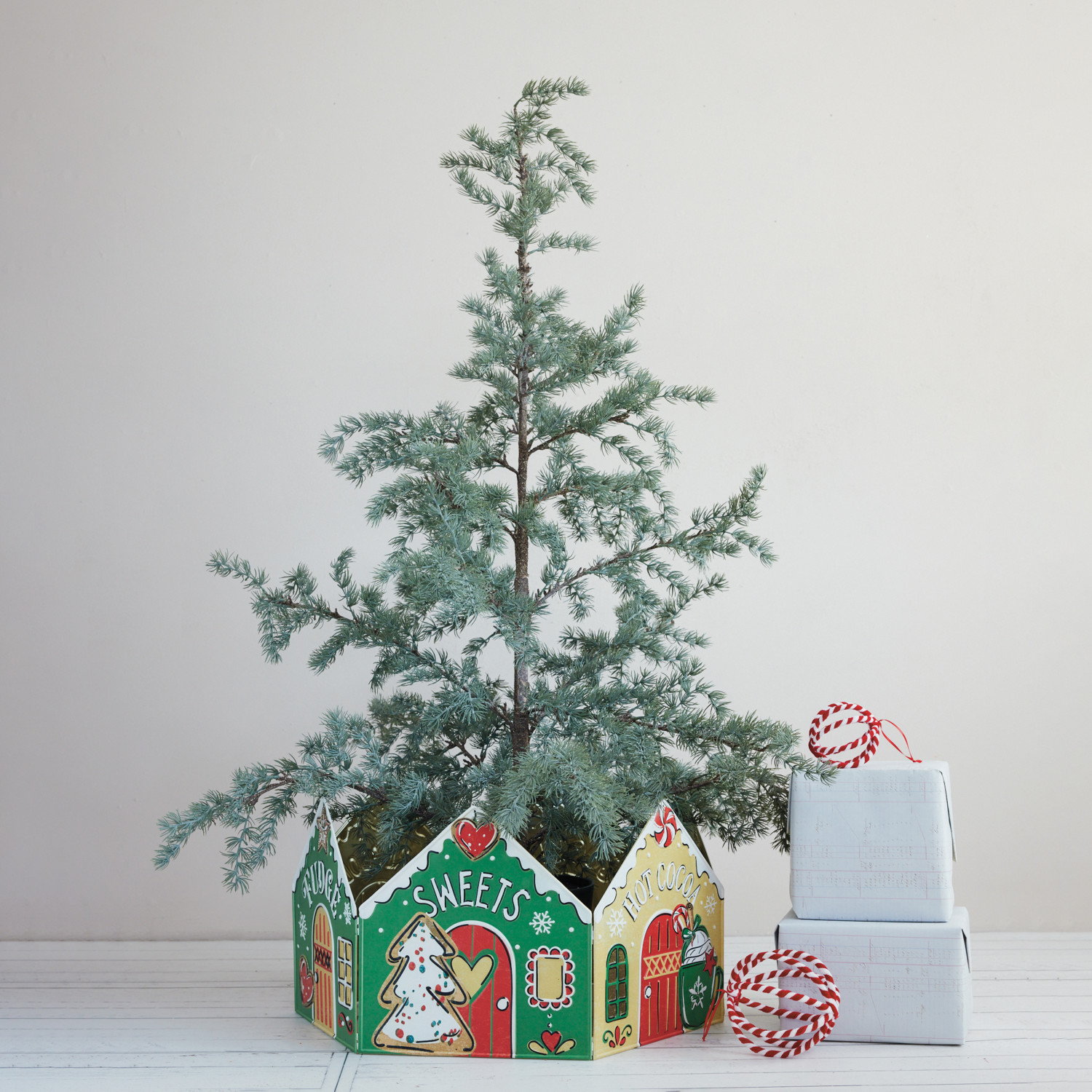 Embossed Metal Folding Tree Collar with Holiday Store Fronts, KD