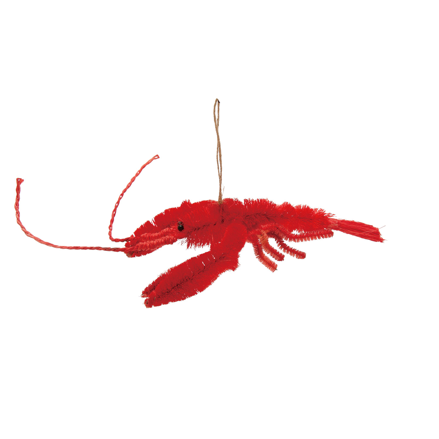 6-3/4"L x 1-1/2"H Sisal Bottle Brush Lobster Ornament, Red