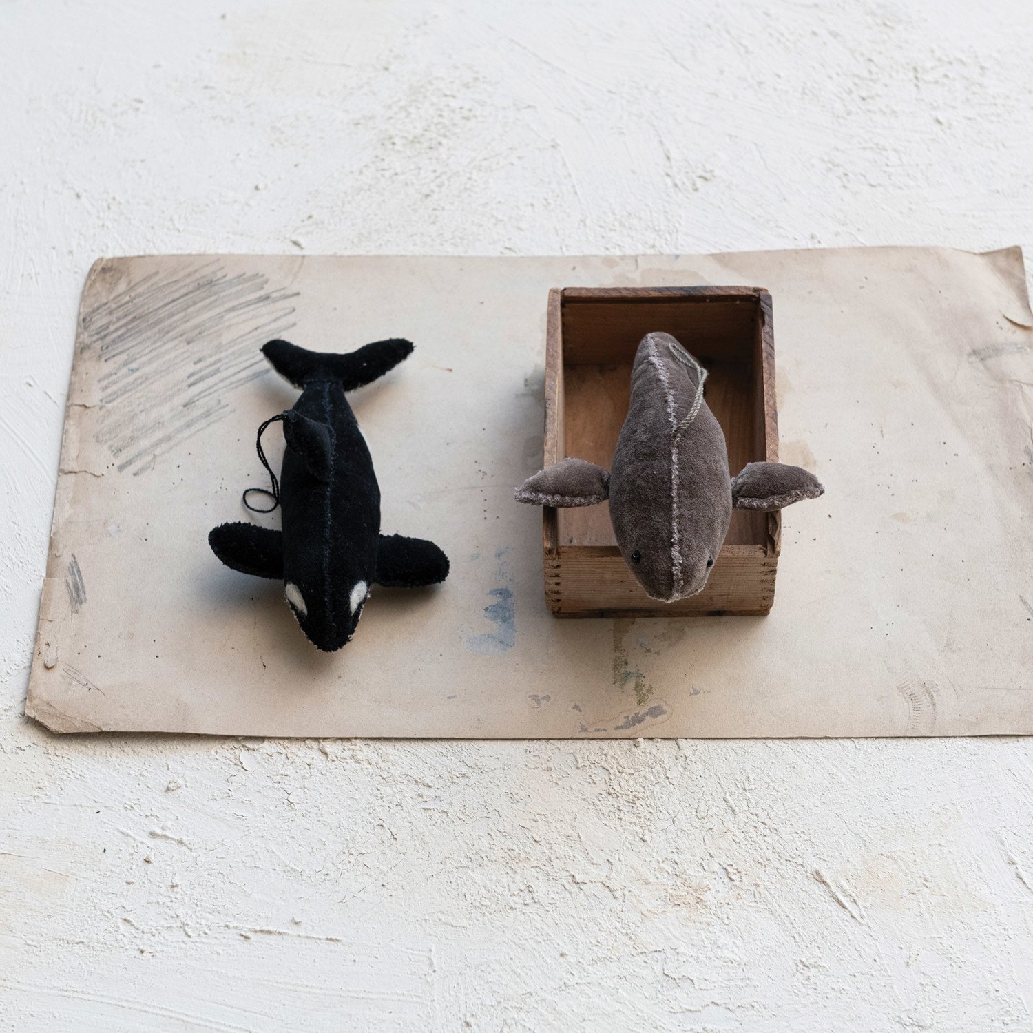 Catalog Name: 7"L x 3"H Handmade Cotton Velvet Whale Ornament, Multi Color, 2 Styles