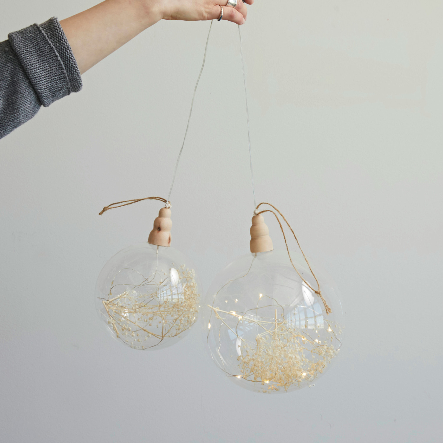 Catalog Name: 7-3/4" Round Glass & Wood LED Ball Ornament w/ Dried Botanicals (Requires 2-AA Batteries)
