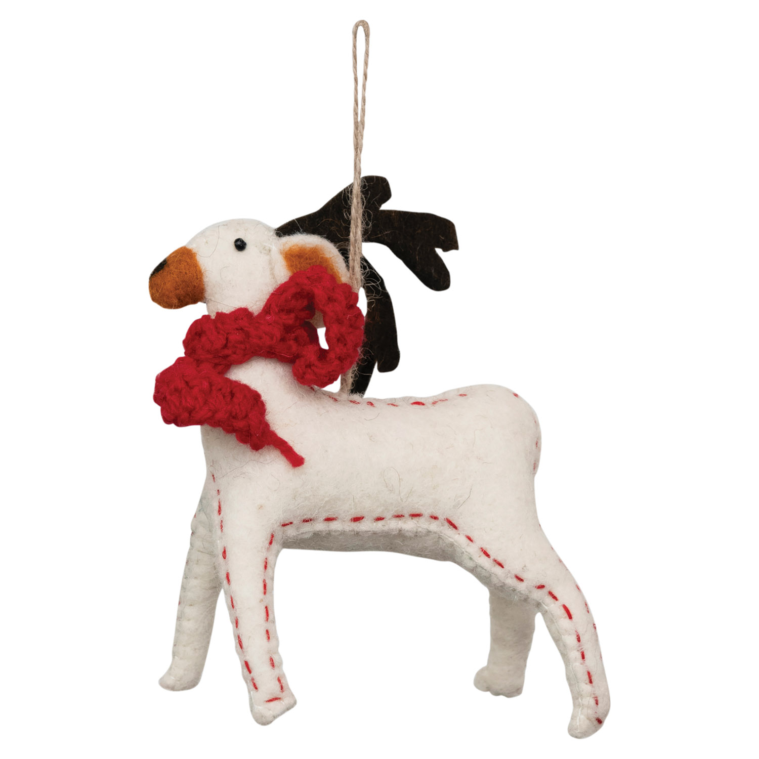 6-1/2"H Wool Felt Reindeer with Scarf Ornament