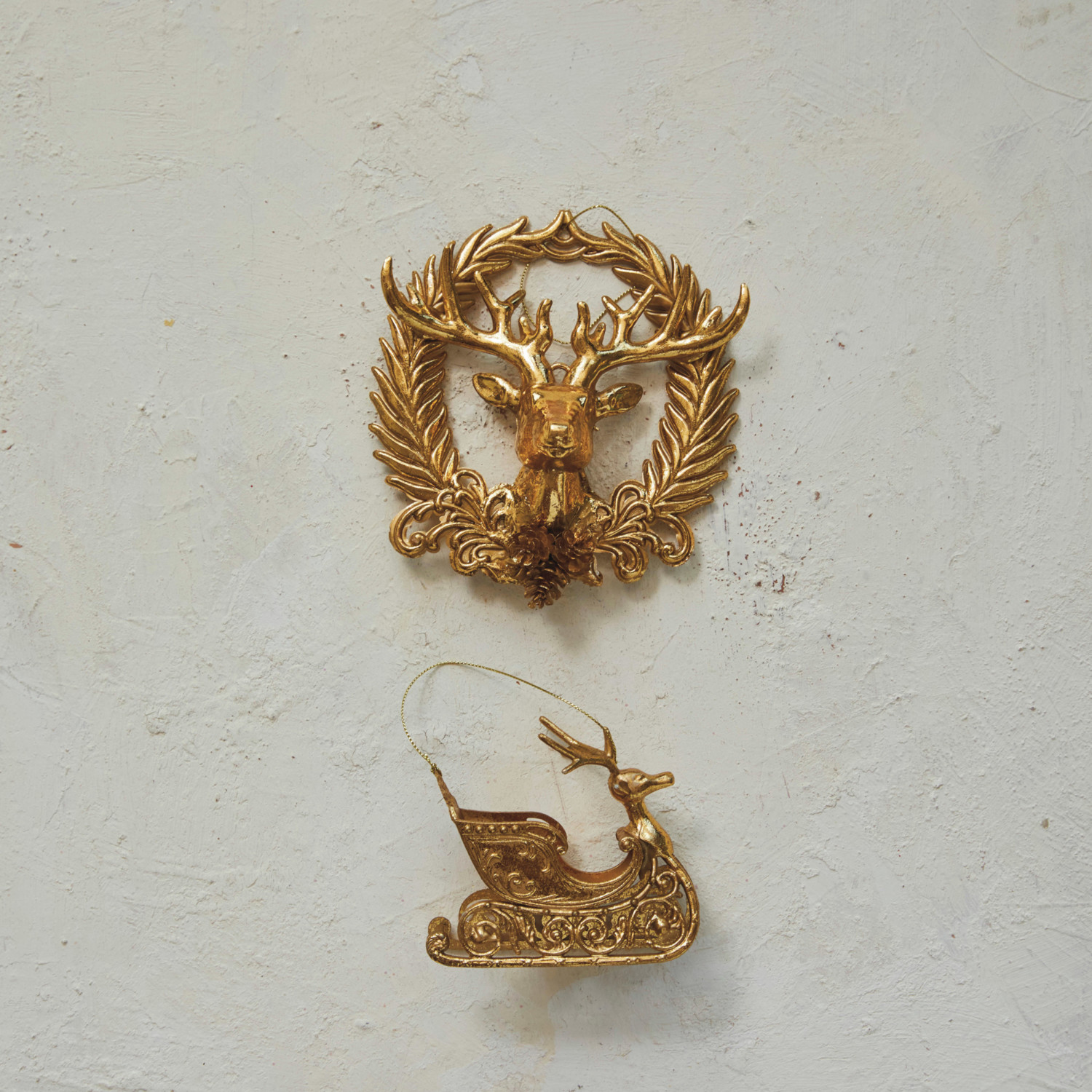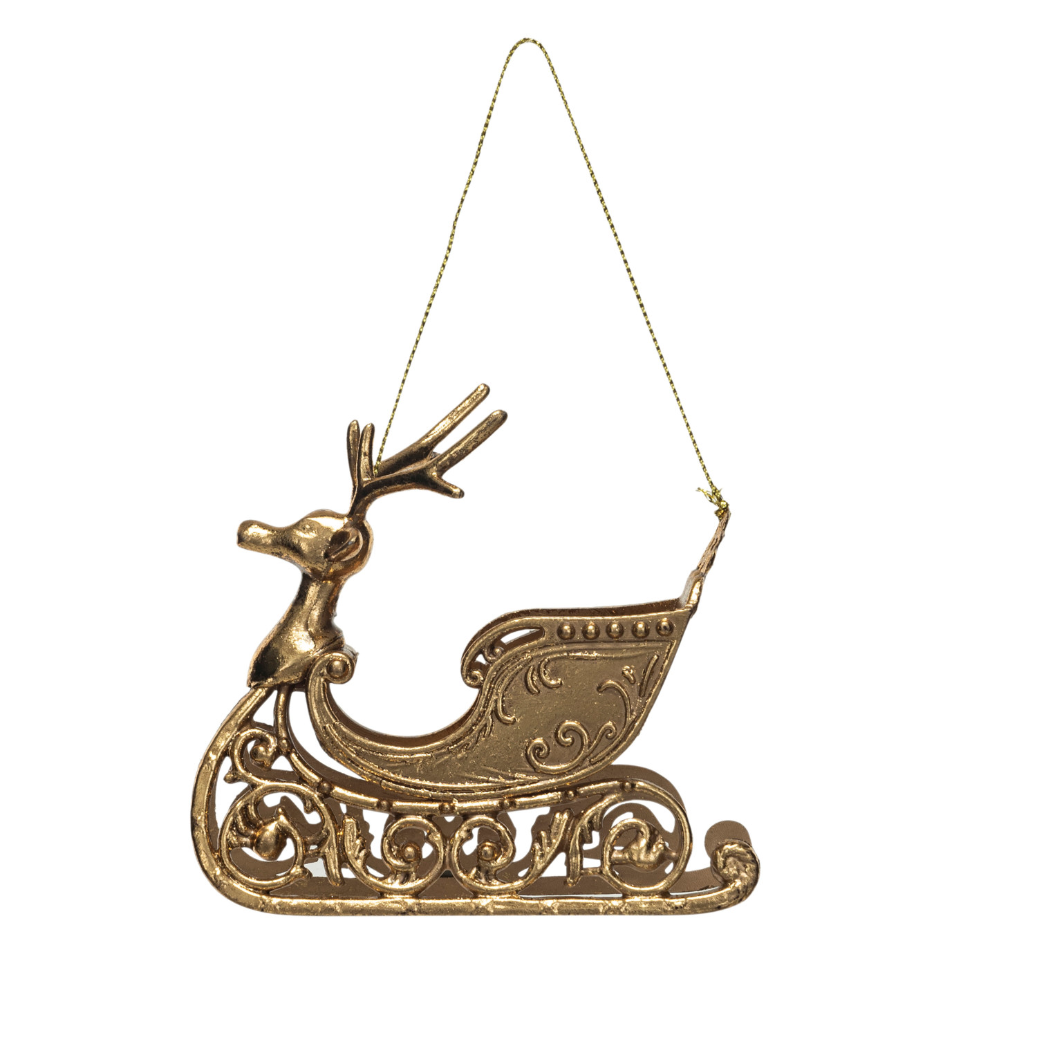 Catalog Name: 4"L x 2"W x 3-3/4"H Plastic Sleigh Ornament, Gold Finish