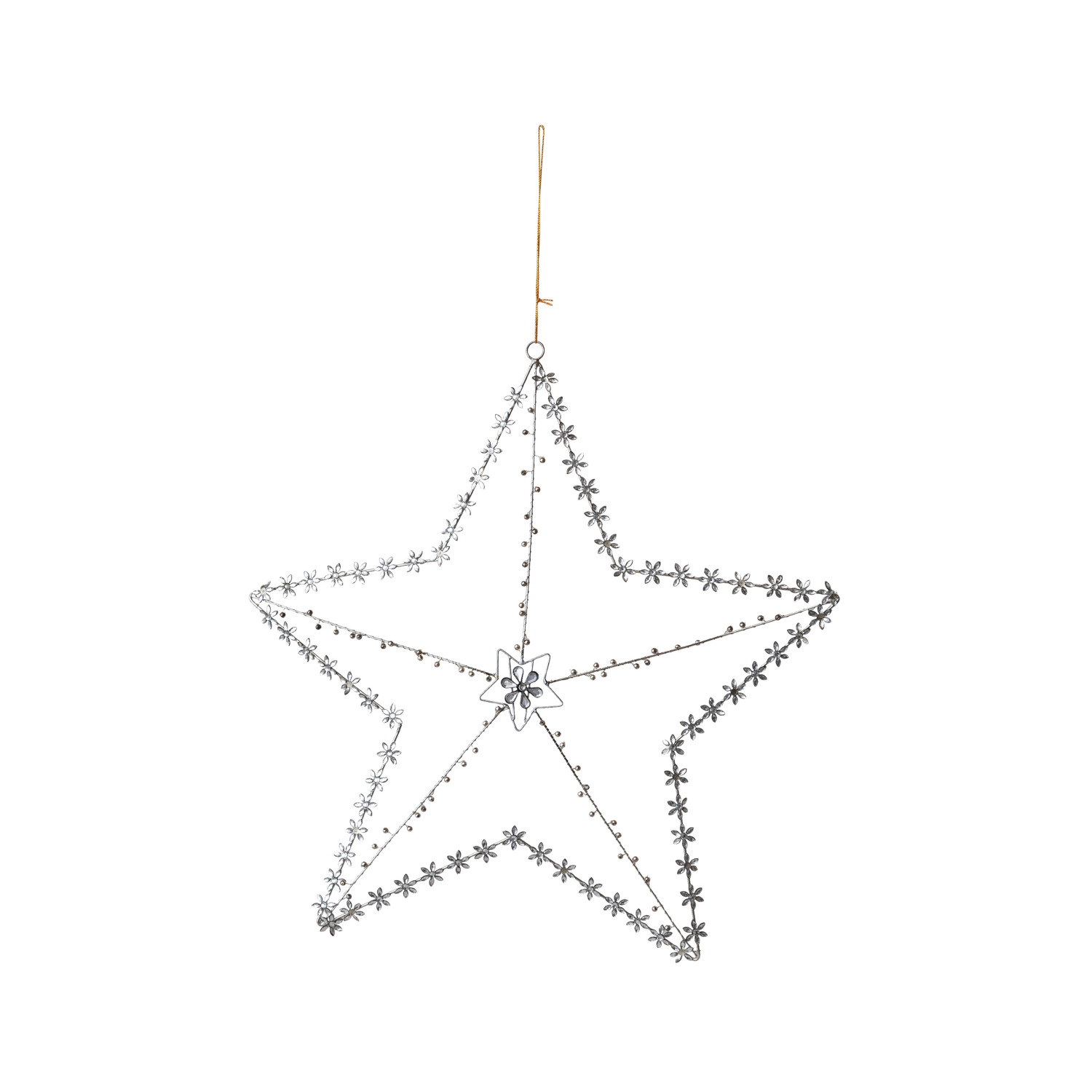 Catalog Name: 15-1/2"L x 15-1/2"H Glass Beaded Metal Star Ornament w/ Jeweled Flowers, Silver Finish