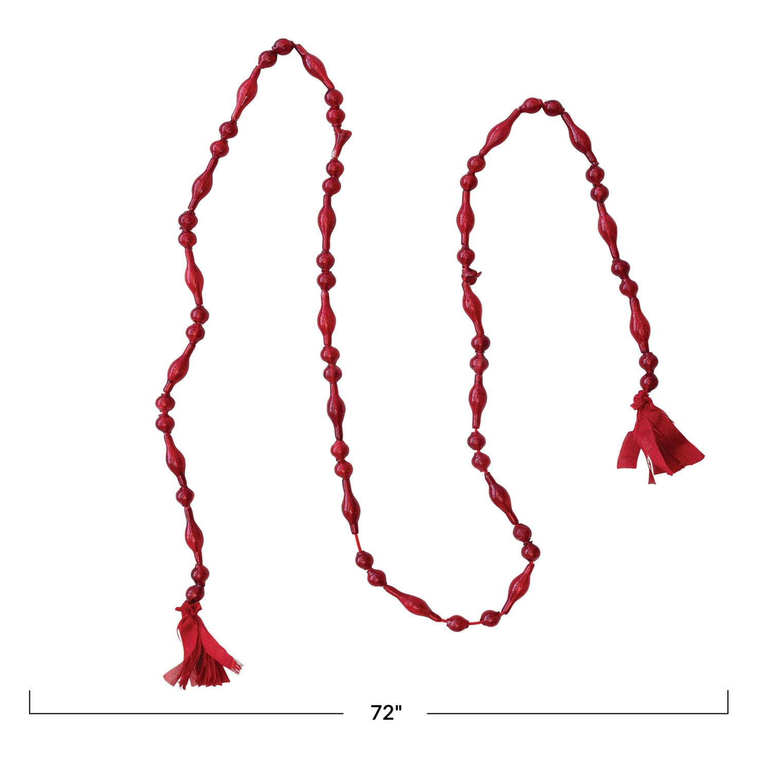 72"L Glass Bead Garland w/ Cotton Tassels, Red