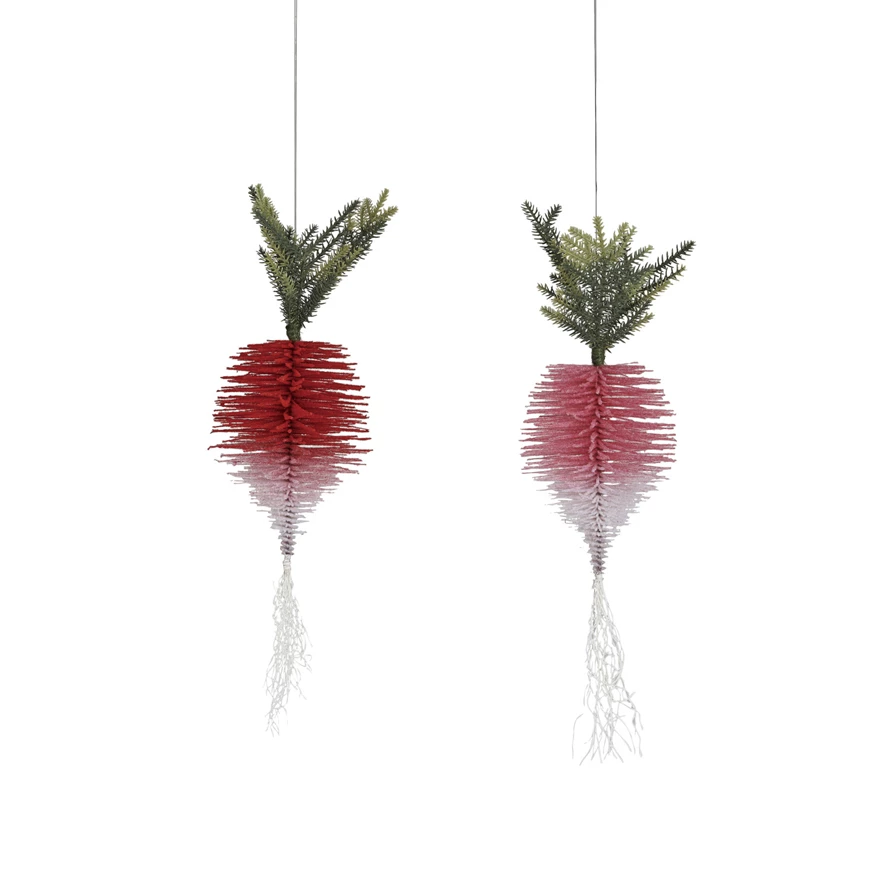 Flocked Bottle Brush Radish Ornament, 2 Colors