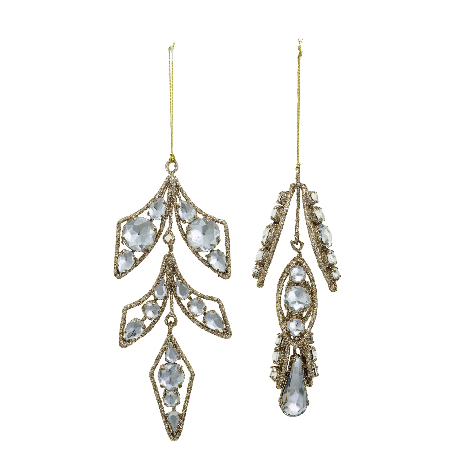 Catalog Name: 5-3/4"H - 6-1/4"H Metal & Plastic Ornament w/ Jewels & Glitter, Gold Finish, 2 Styles