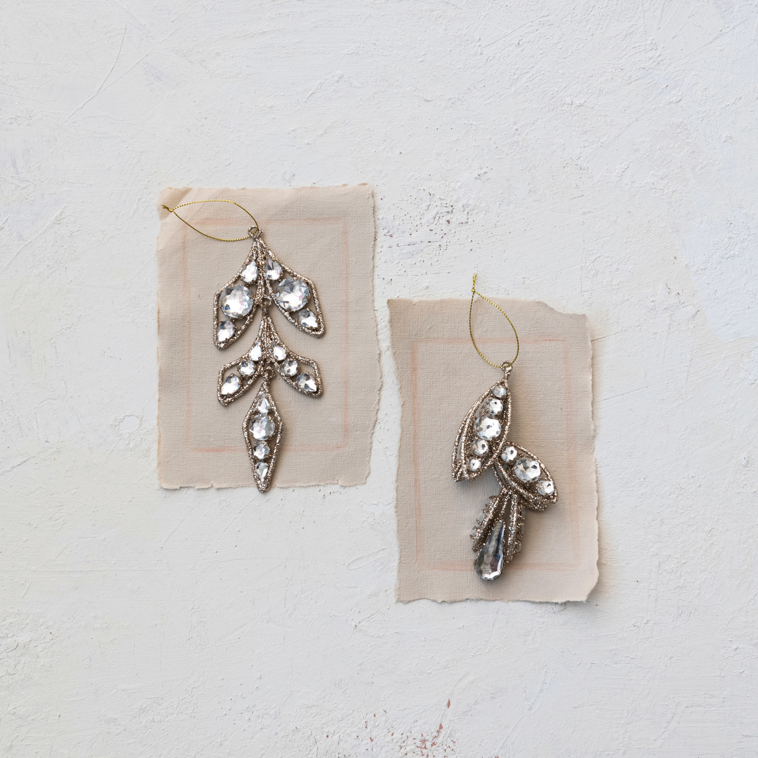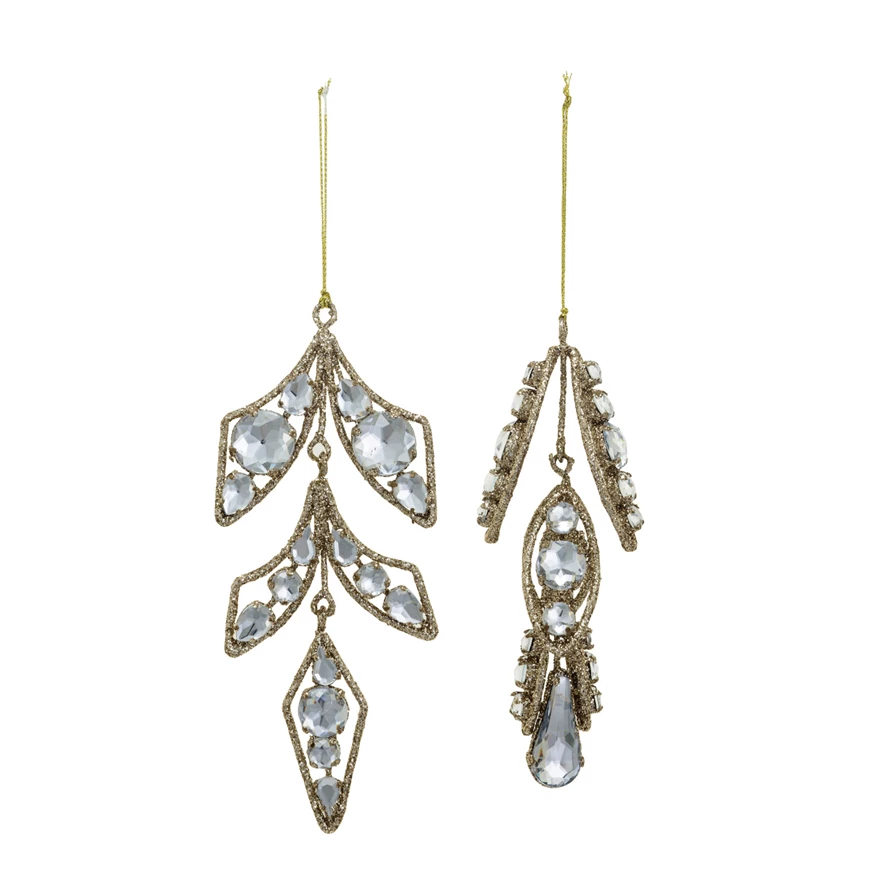 Metal & Plastic Ornament w/ Jewels & Glitter, Gold Finish, 2 Styles