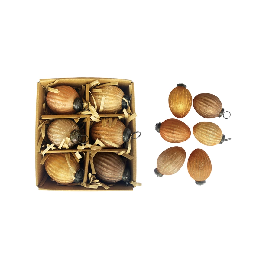Catalog Name: 3"H Embossed Recycled Mercury Glass Ornaments, Frosted Finish, Multi Color, Boxed Set of 6
