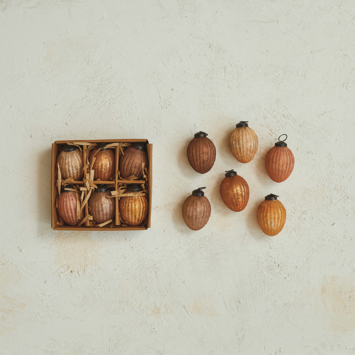 Embossed Recycled Mercury Glass Ornaments, Frosted Finish, Boxed Set of 6