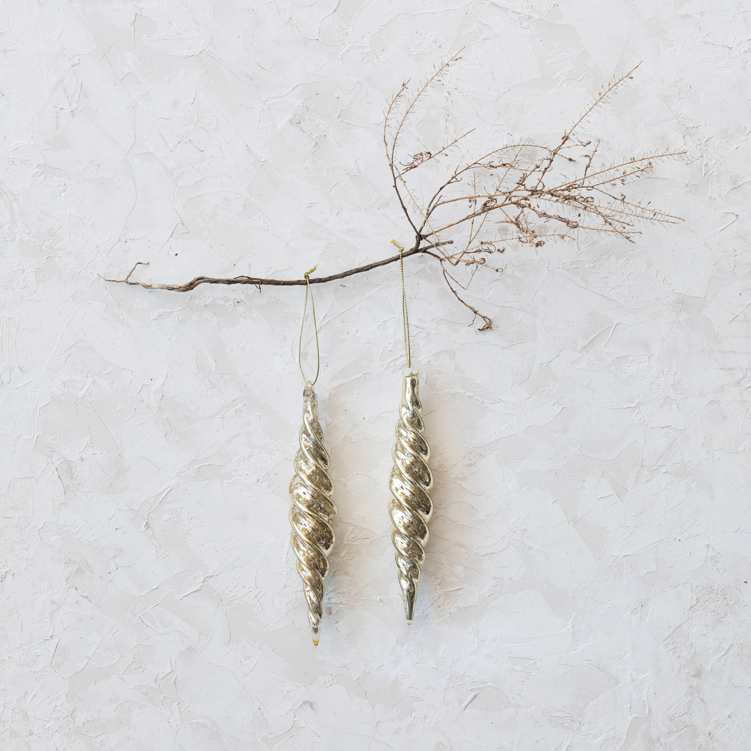Catalog Name: 7"H Glass Spiral Ornament, Antique Silver Finish