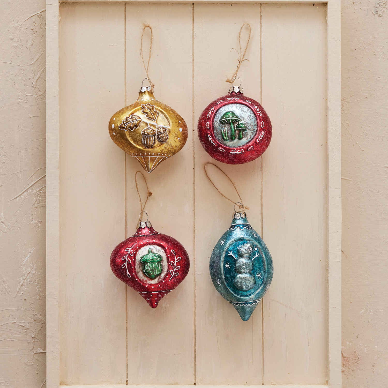 Embossed Glass Ornament with Holiday Design, 4 Styles ©