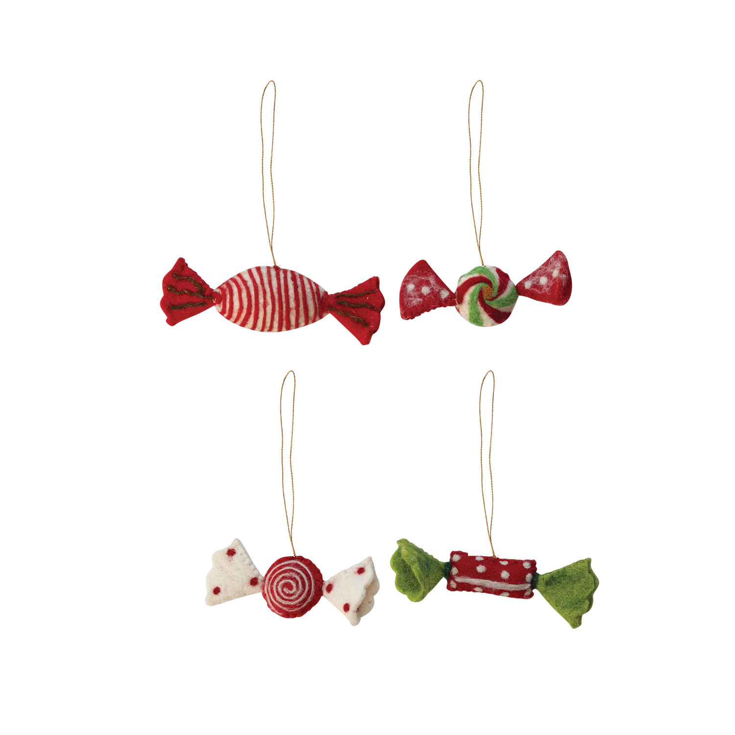 5"L Handmade Wool Felt Candy Ornament with Embroidery, 4 Styles