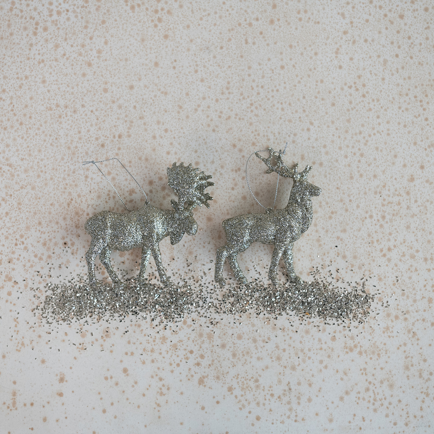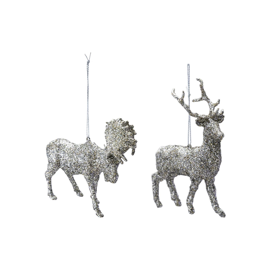 Plastic Moose/Deer Ornament, Silver Glitter Finish, 2 Styles
