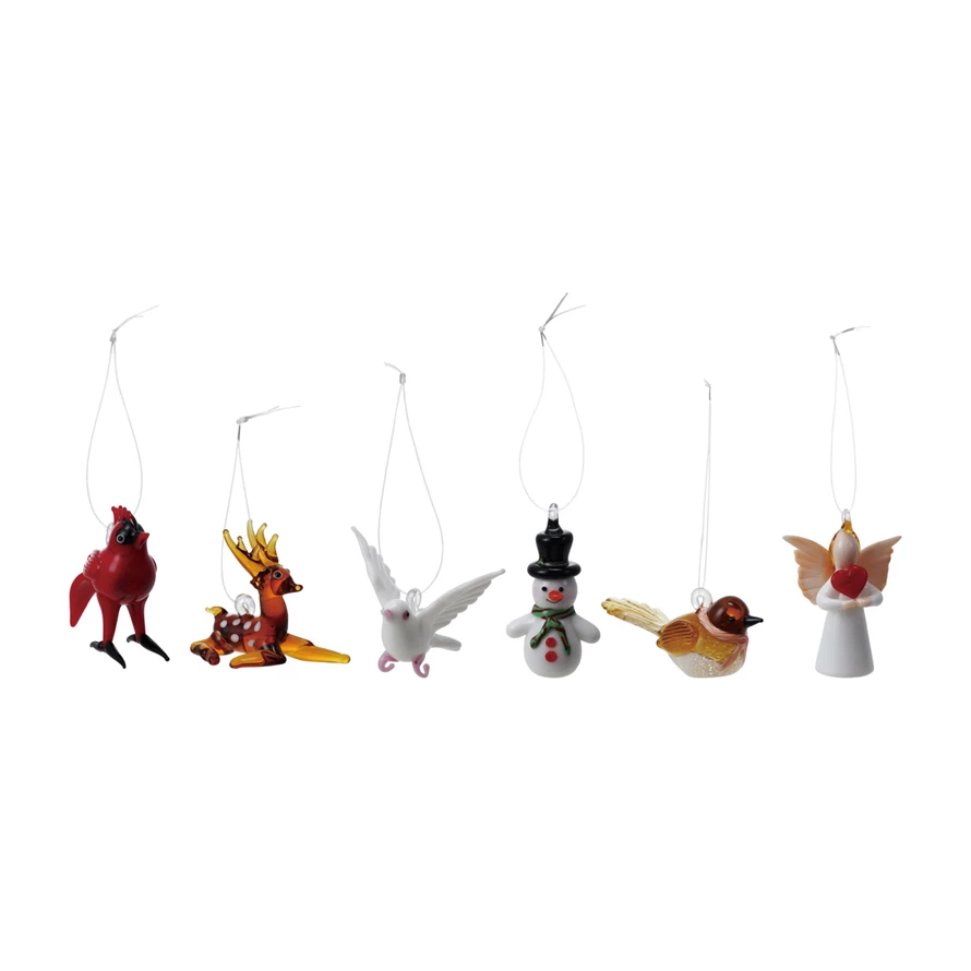 Catalog Name: Approximately 2-1/2"L Handmade Glass Holiday Icon/Animal Ornament, Multi Color, 6 Styles