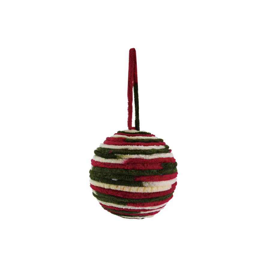 Cotton Chenille Yarn Wrapped Foam Ball Ornament, Red, Green & White