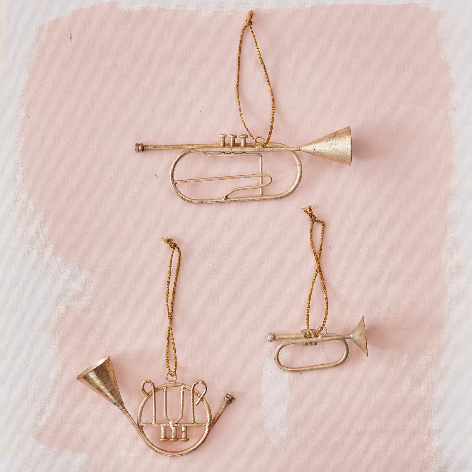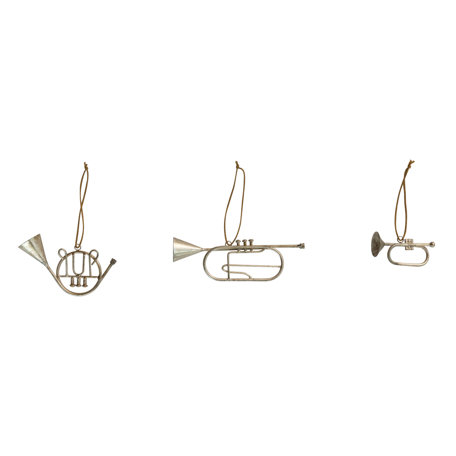 Catalog Name: 1-3/4"H - 3"H Metal Musical Instrument Ornament, Antique Silver Finish, 3 Styles
