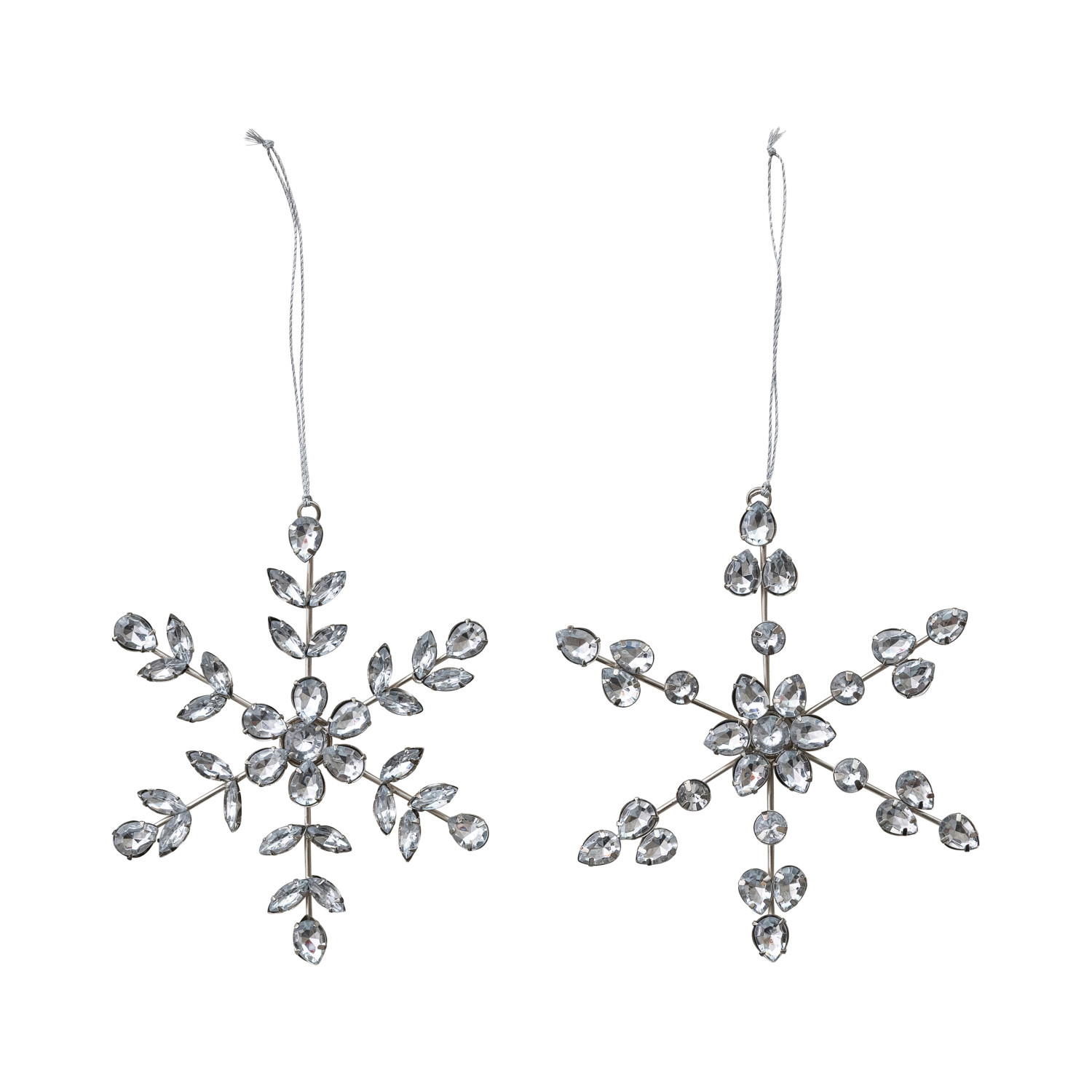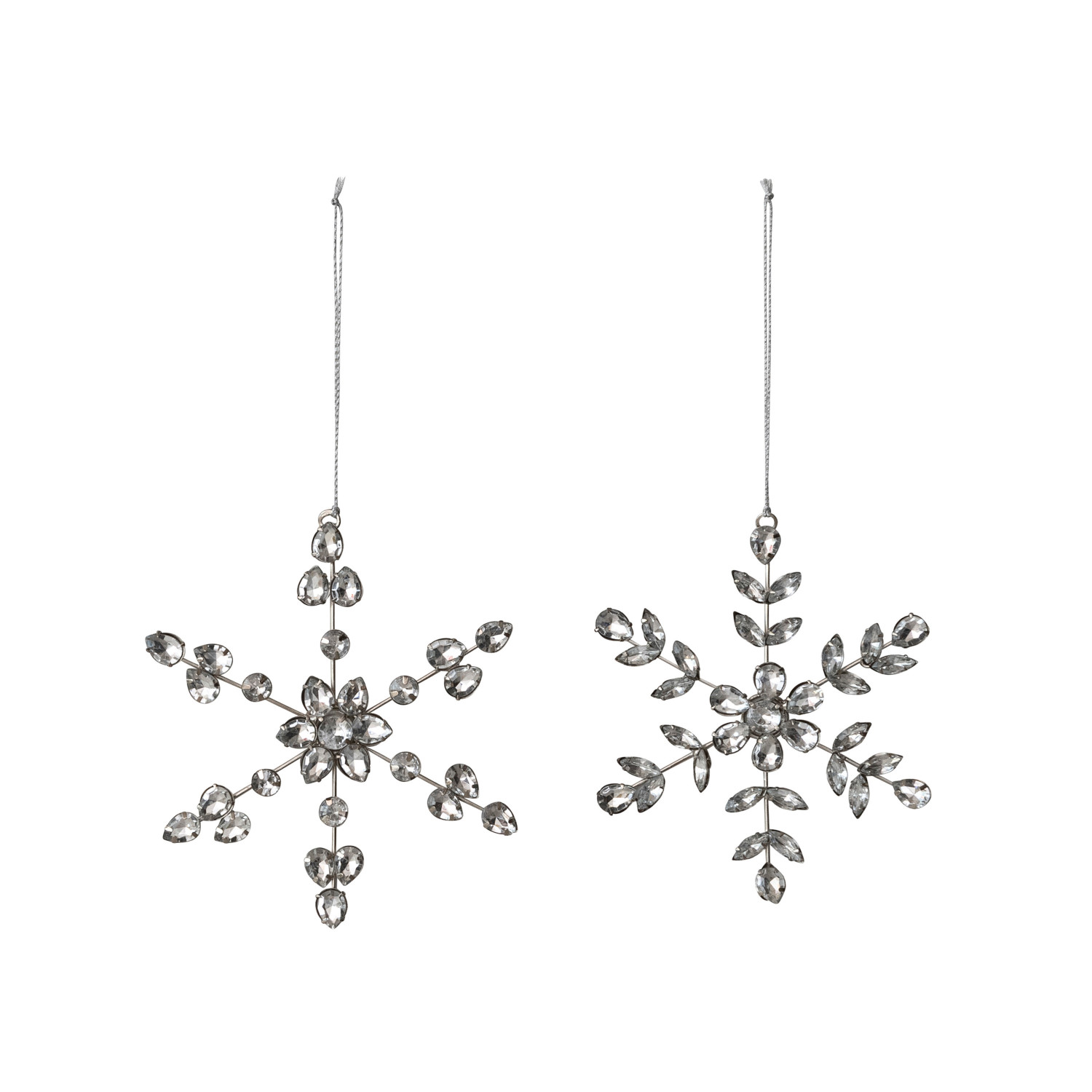 Catalog Name: 5-1/2"H Acrylic Jewel & Metal Snowflake Ornament, Silver Finish, 2 Styles