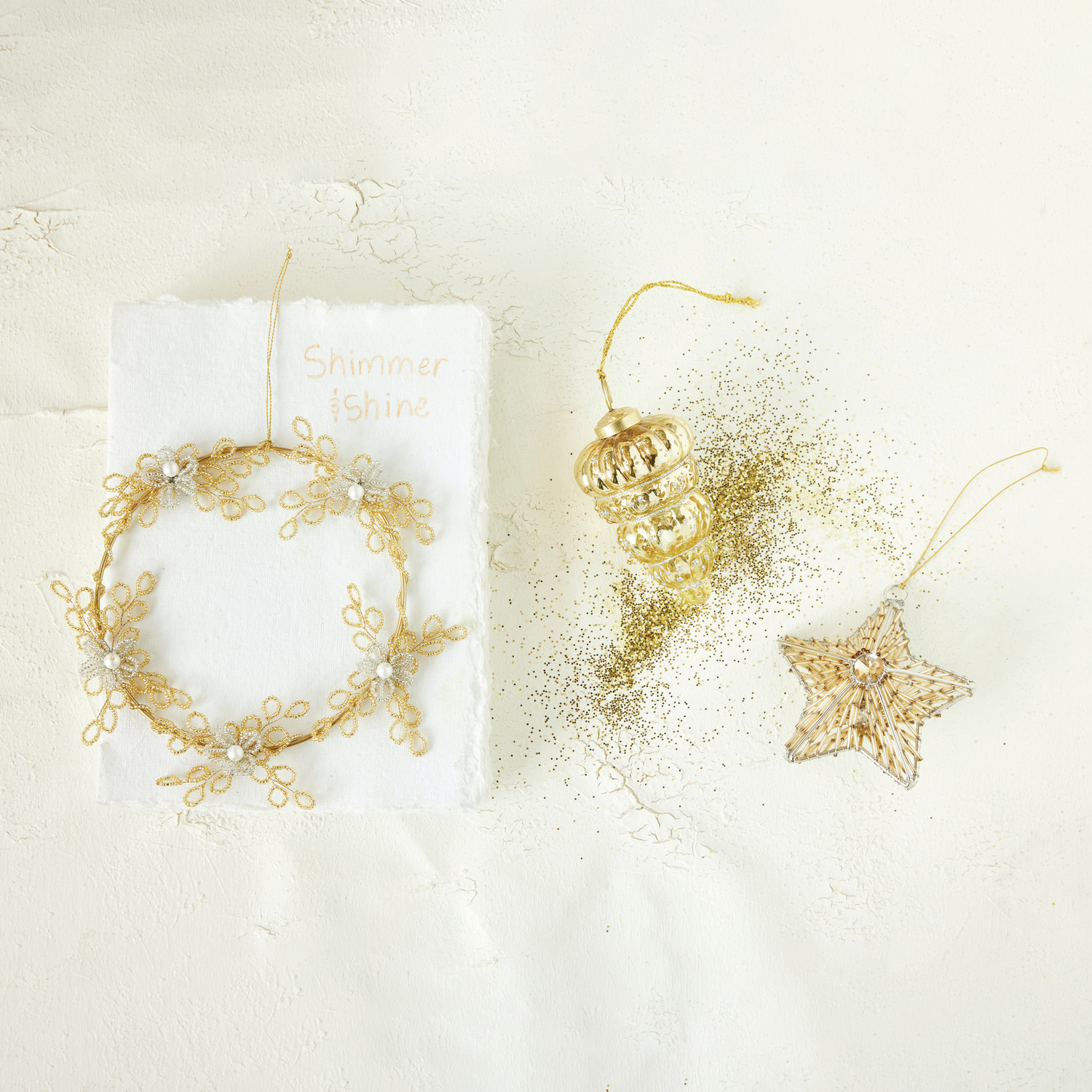 Embossed Mercury Glass Finial Ornament with Glitter, Gold Finish