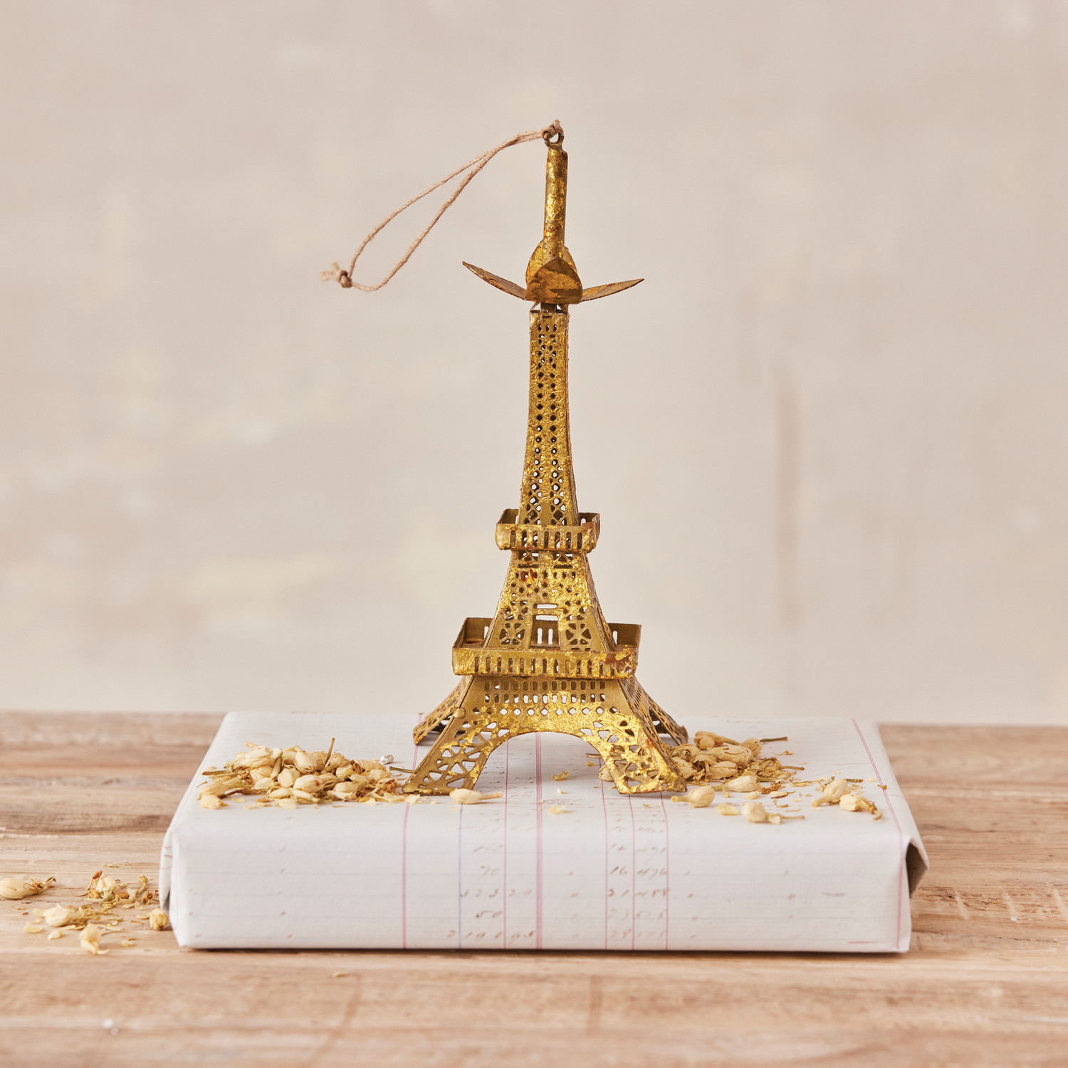 7-3/4"H Metal Eiffel Tower Ornament, Gold Foil Finish