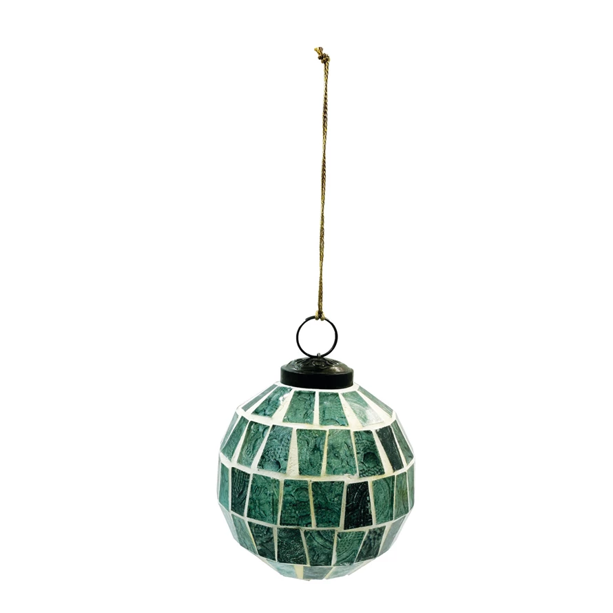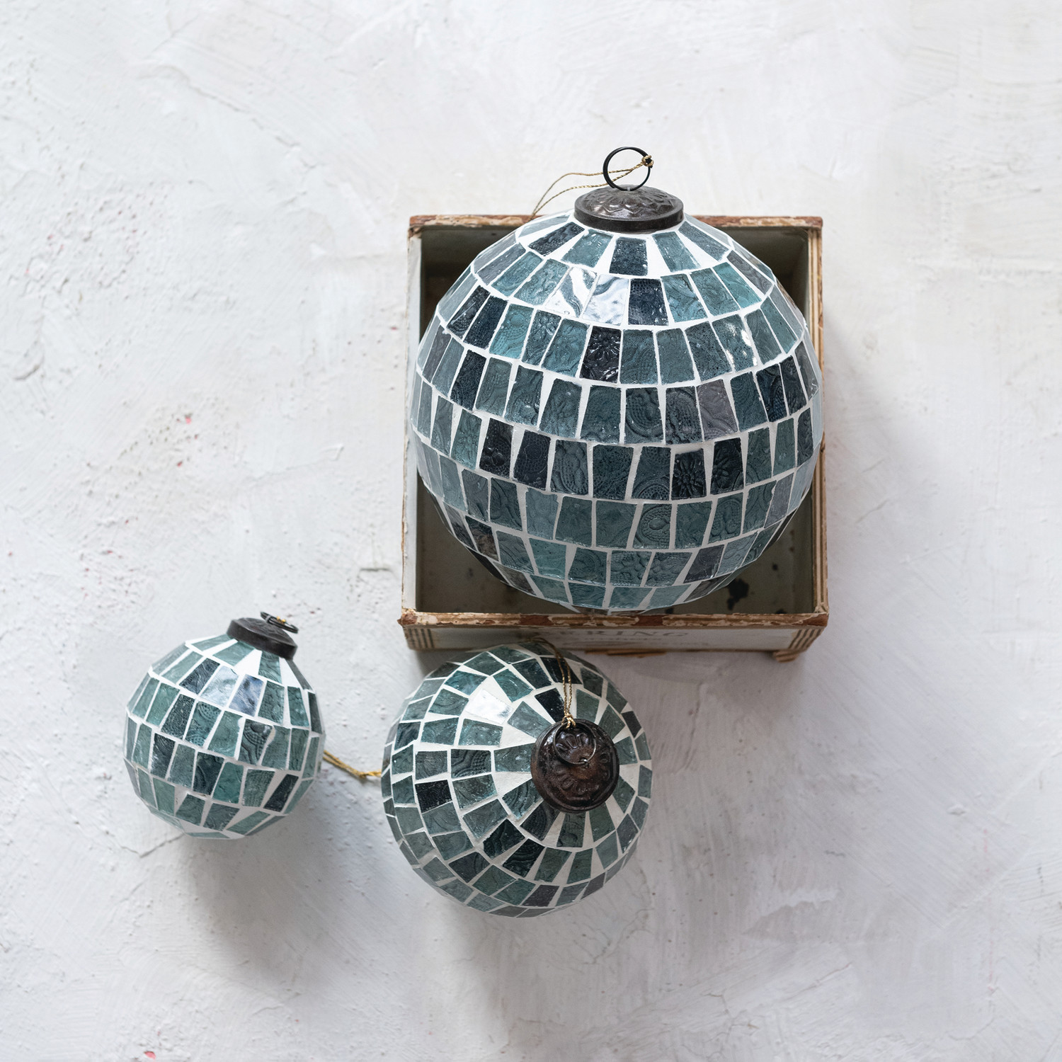 3" Round Glass Mosaic Ball Ornament, Blue & White