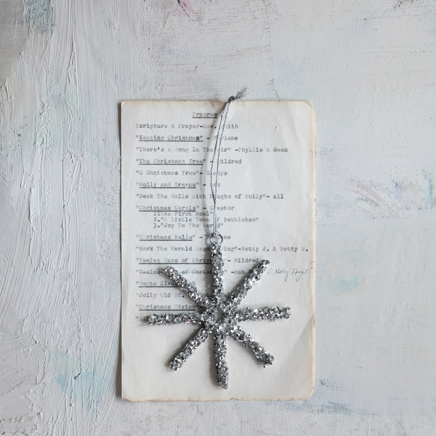 Handmade Wire Snowflake Ornament with Mica Flakes, Silver Finish