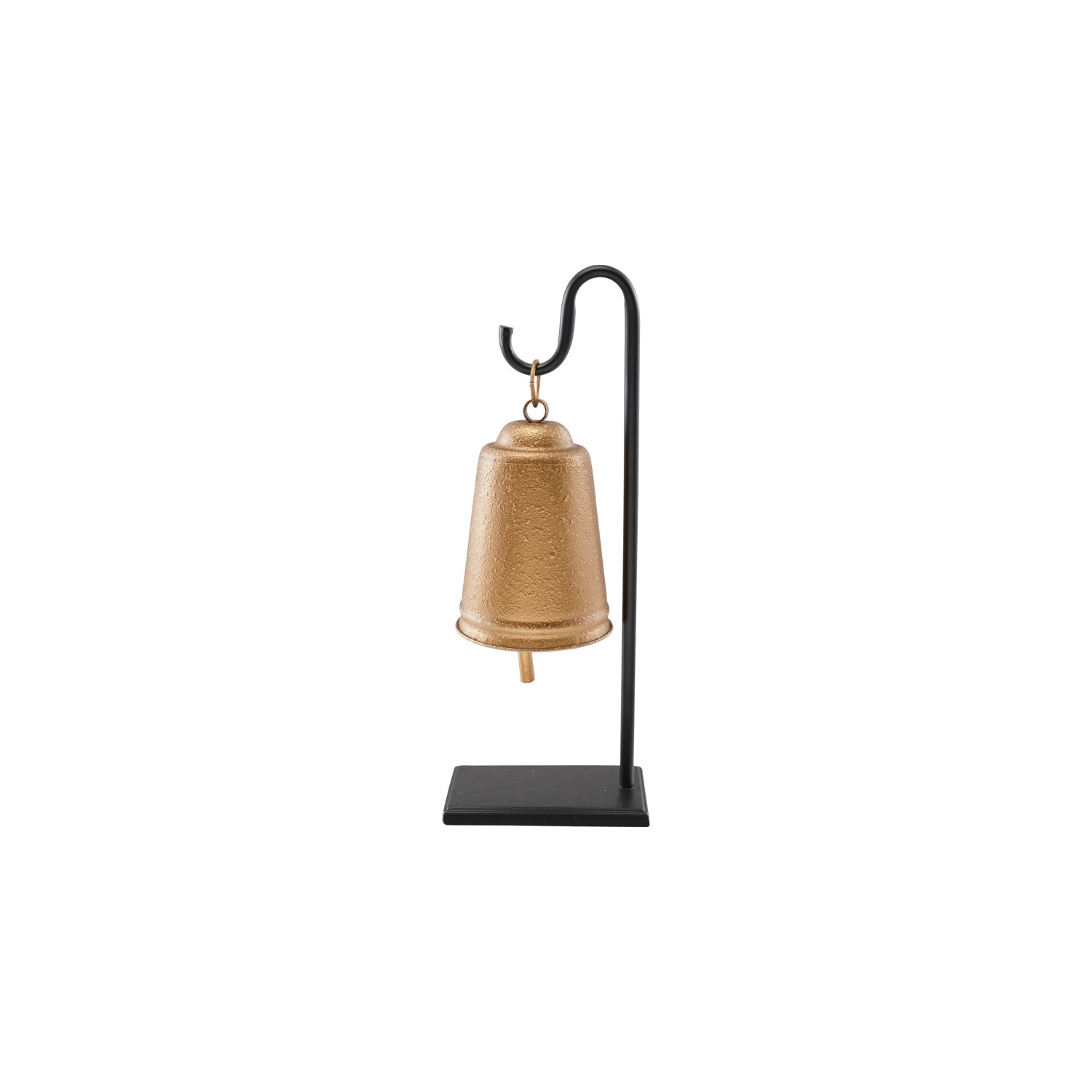 Metal Bell with Stand, Antique Gold Finish & Black, Set of 2