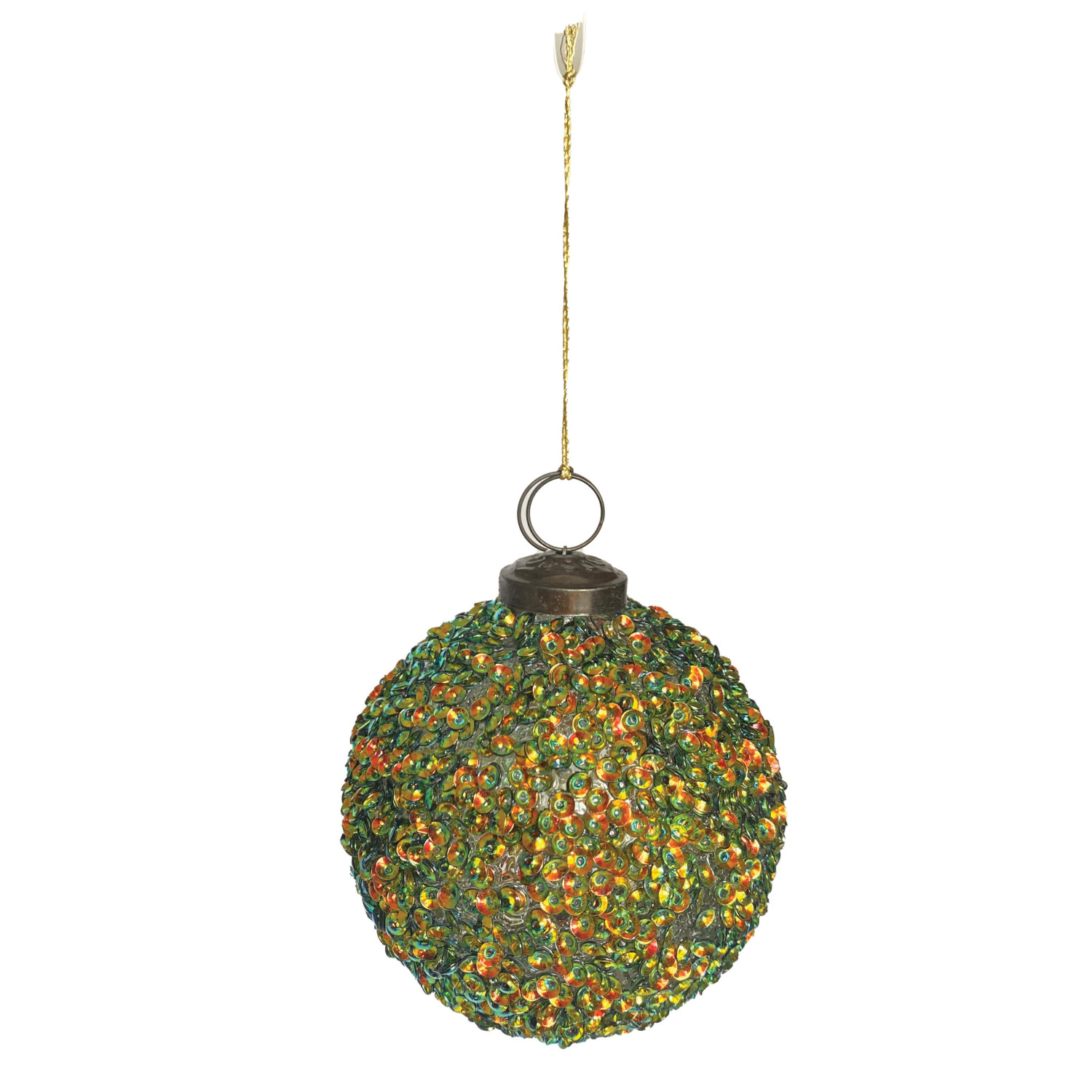 Handmade Glass Ball Ornament with Iridescent Sequins