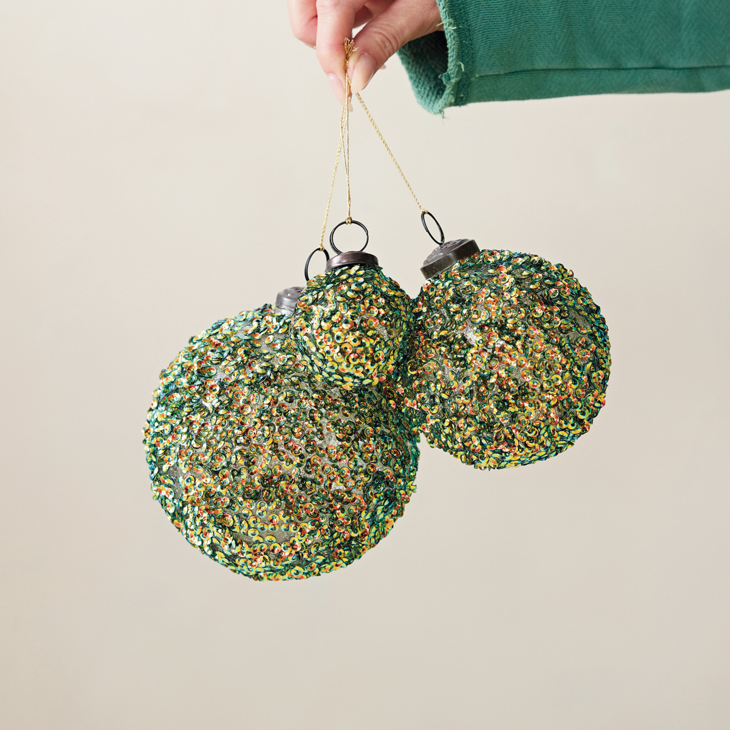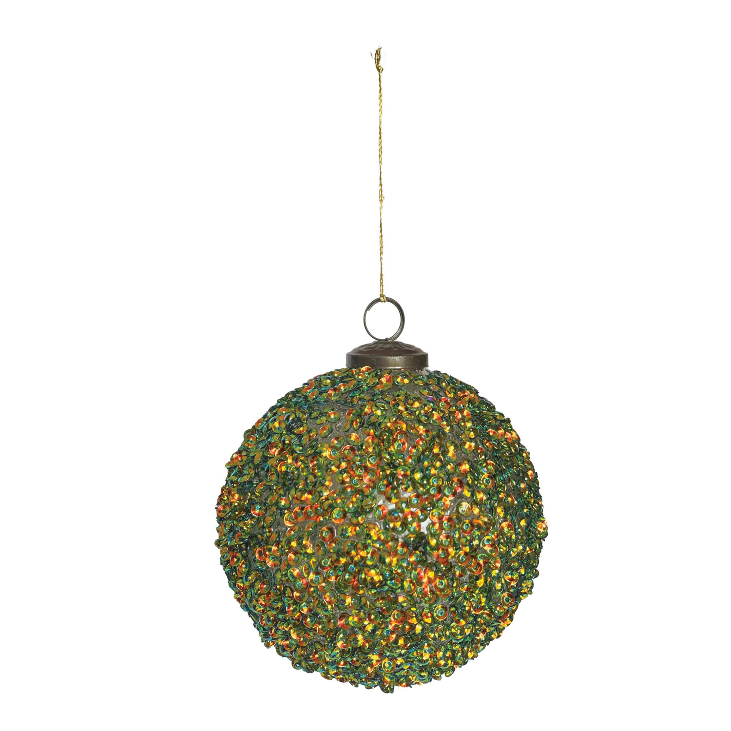Handmade Glass Ball Ornament with Iridescent Sequins