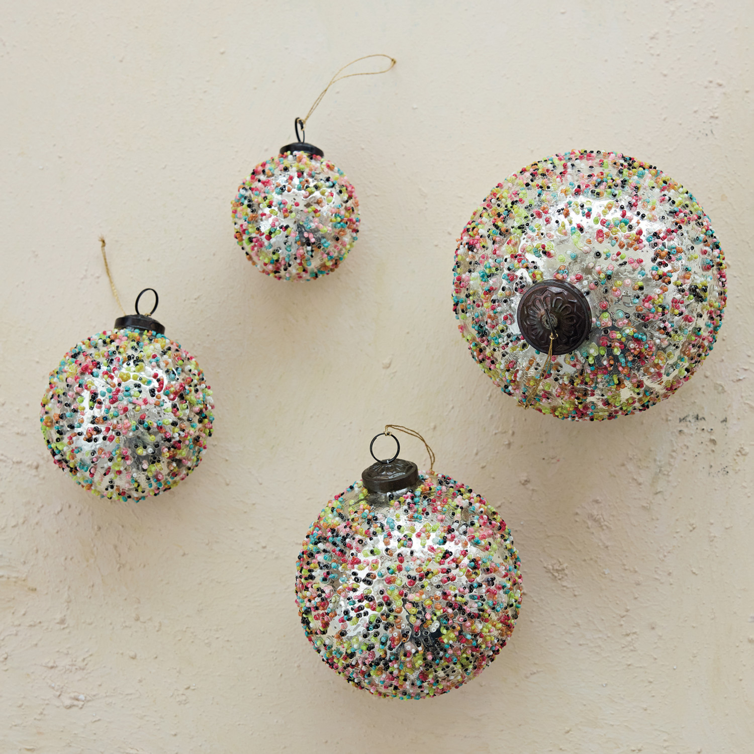 Catalog Name: 3" Round Mercury Glass Ball Ornament w/ Confetti Beads, Multi Color