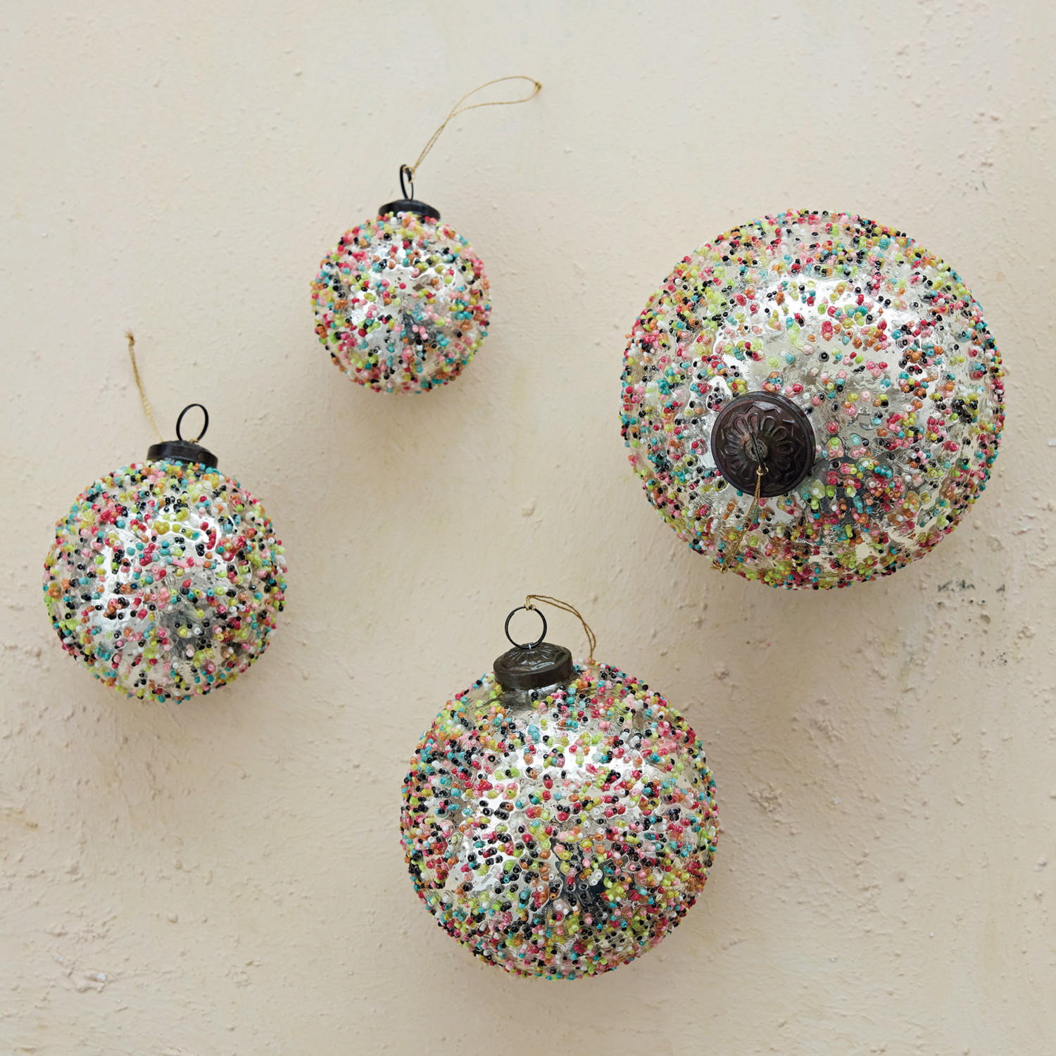 Catalog Name: 6" Round Mercury Glass Ball Ornament w/ Confetti Beads, Multi Color