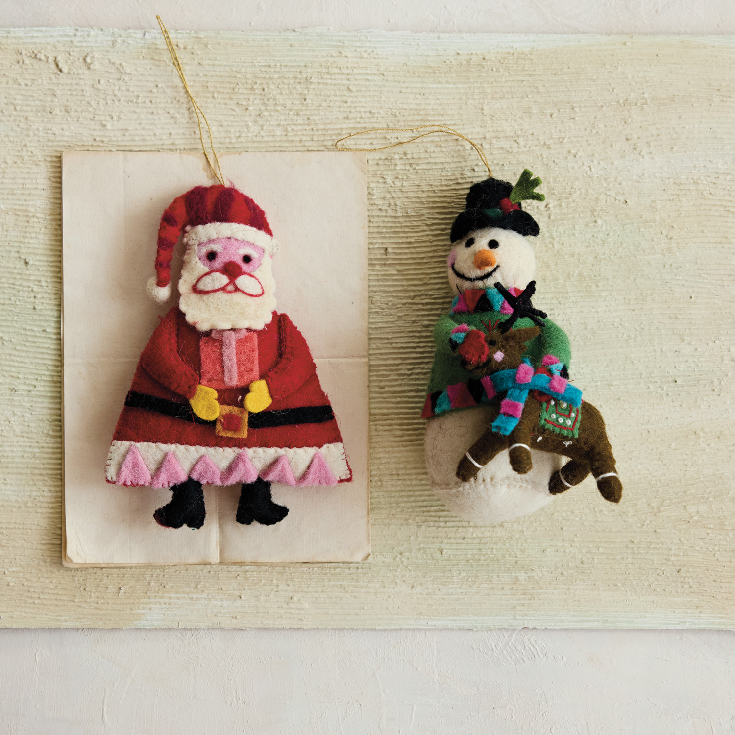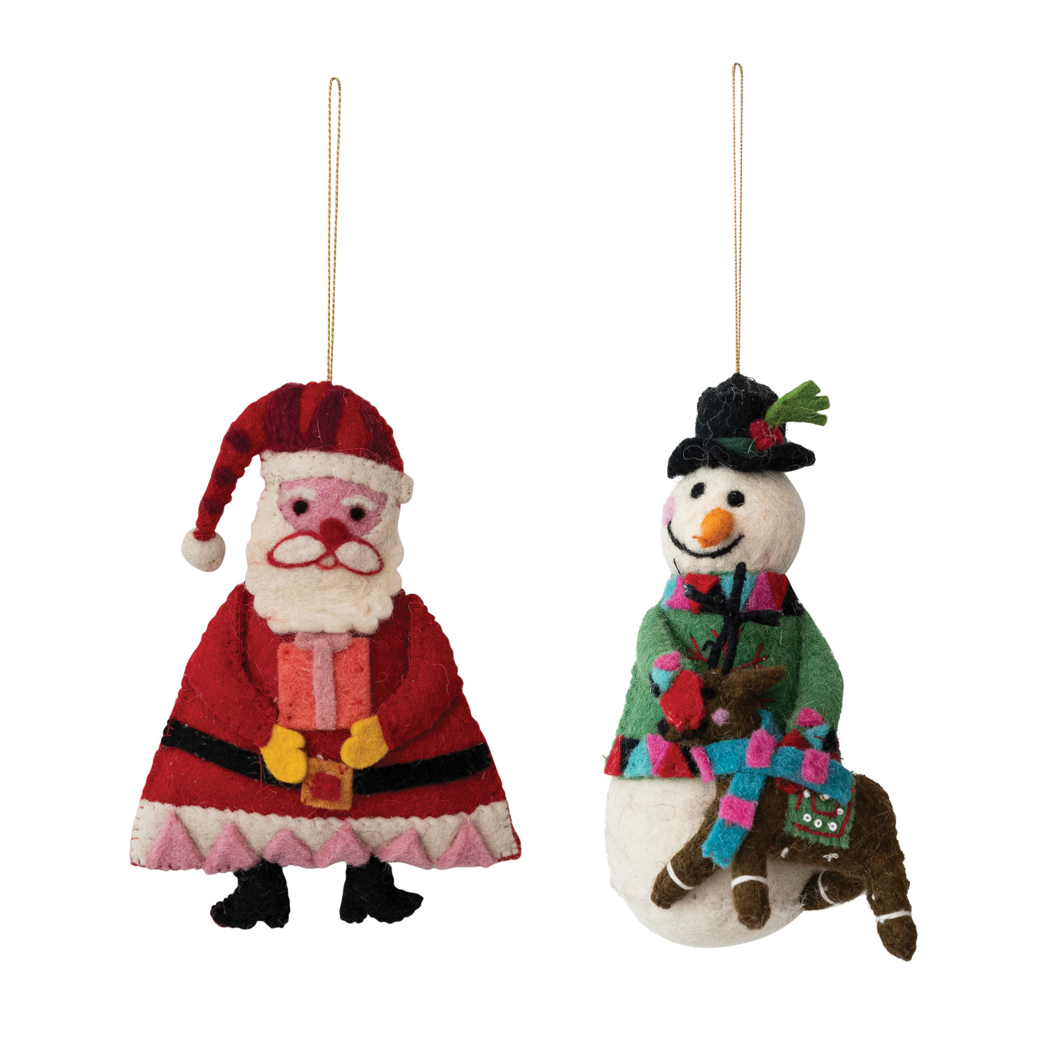 Catalog Name: 7"H - 7-1/2"H Handmade Wool Felt Santa Holding Gift/Snowman & Reindeer Ornament w/ Embroidery, Multi Color, 2 Styles ©