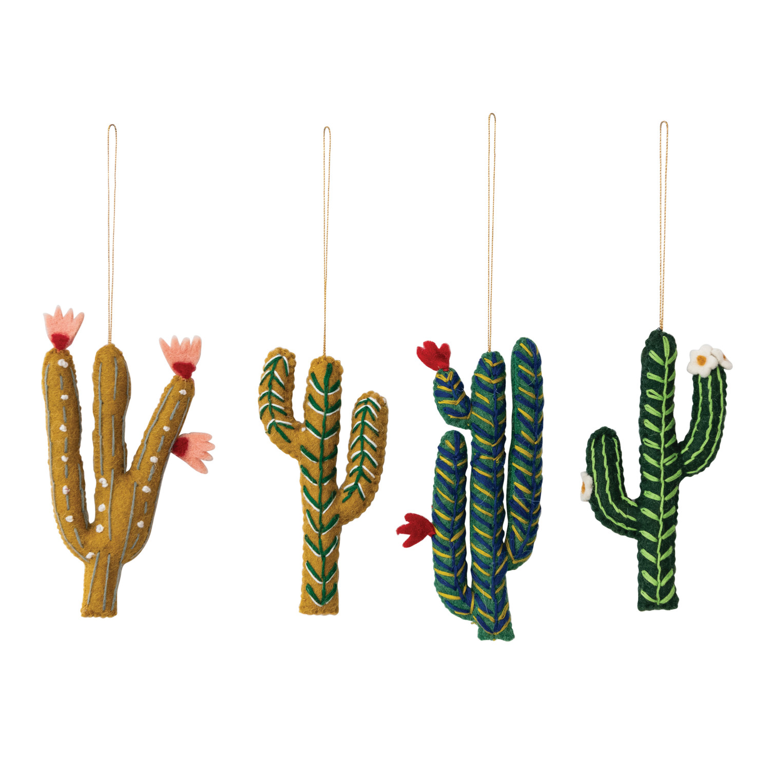 Catalog Name: 3-3/4"H - 6"H Handmade Wool Felt Cactus Ornament w/ Flowers/Embroidery, Multi Color, 4 Styles ©