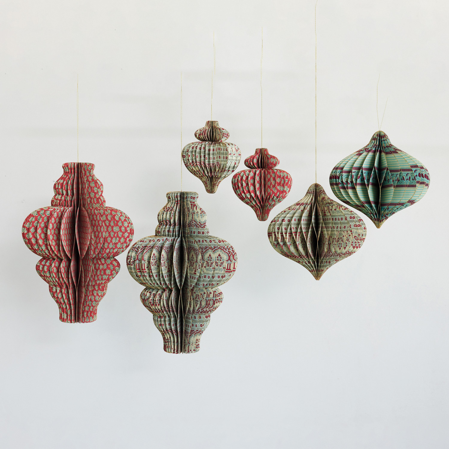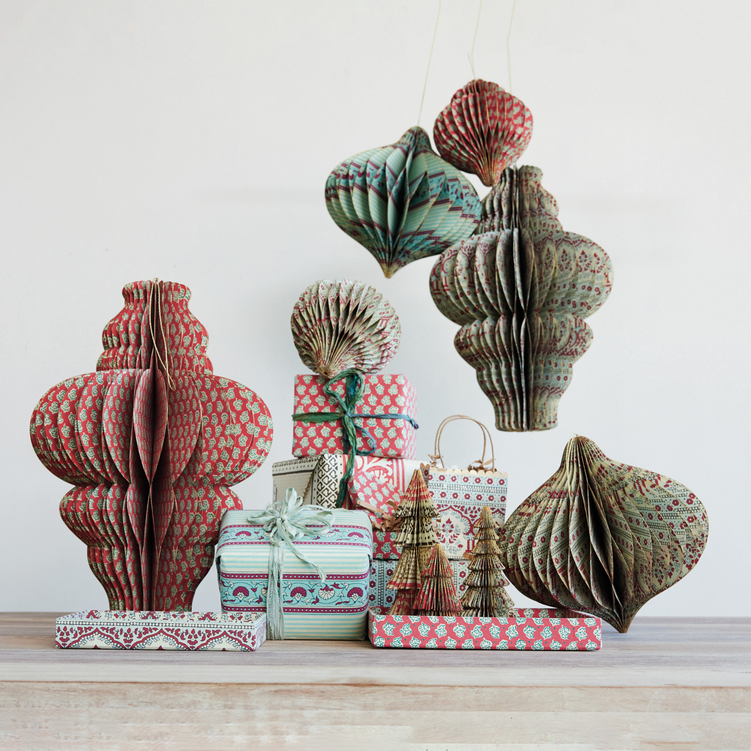 Handmade Recycled Block Printed Paper Folding Honeycomb Finial Ornament, 2 Styles