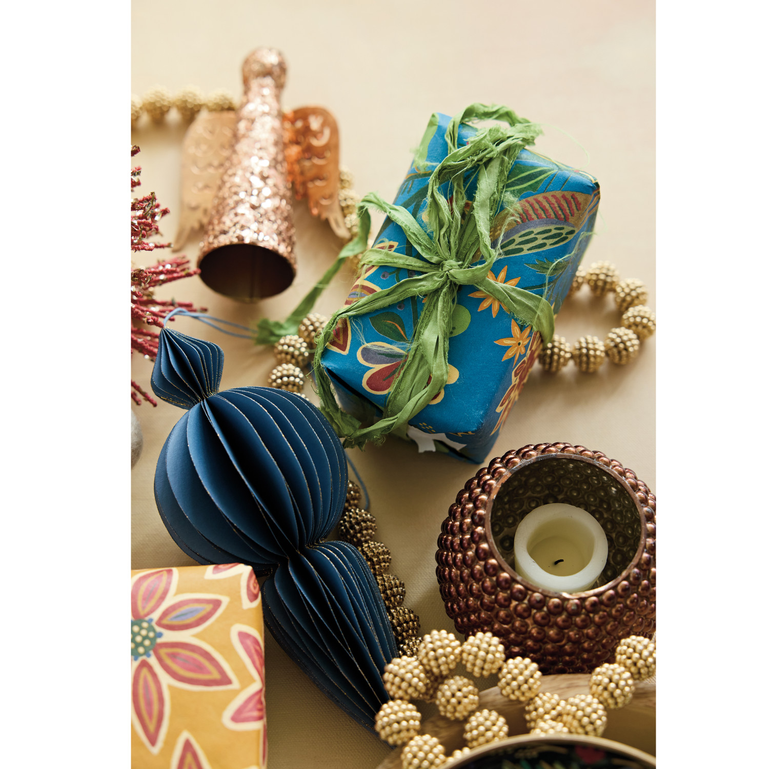 Handmade Recycled Paper Folding Honeycomb Finial Ornament with Gold Glitter Edges, Blue