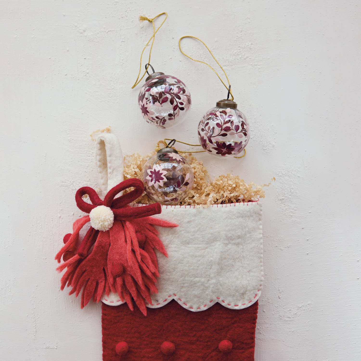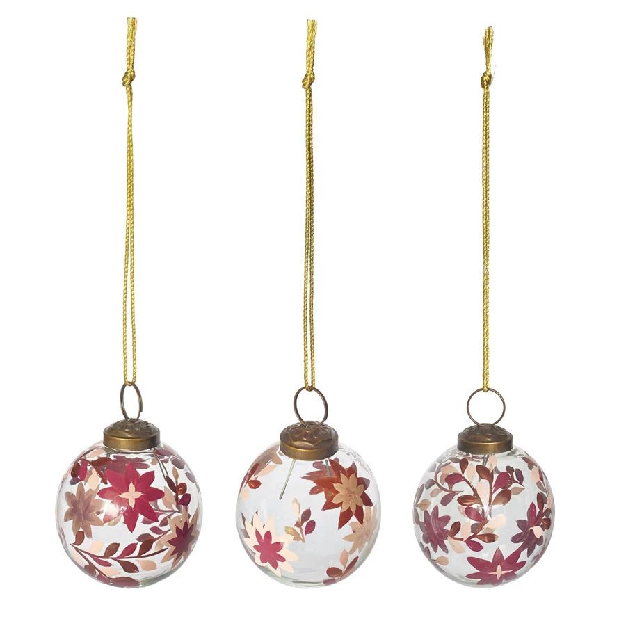 Hand-Painted Glass Ball Ornament with Poinsettia Design, Light Pink, Dark Pink, 3 Styles