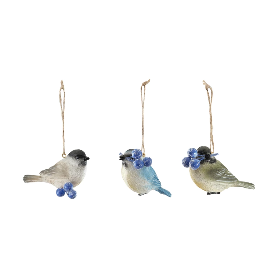Resin Bird with Berries Ornament, 3 Styles