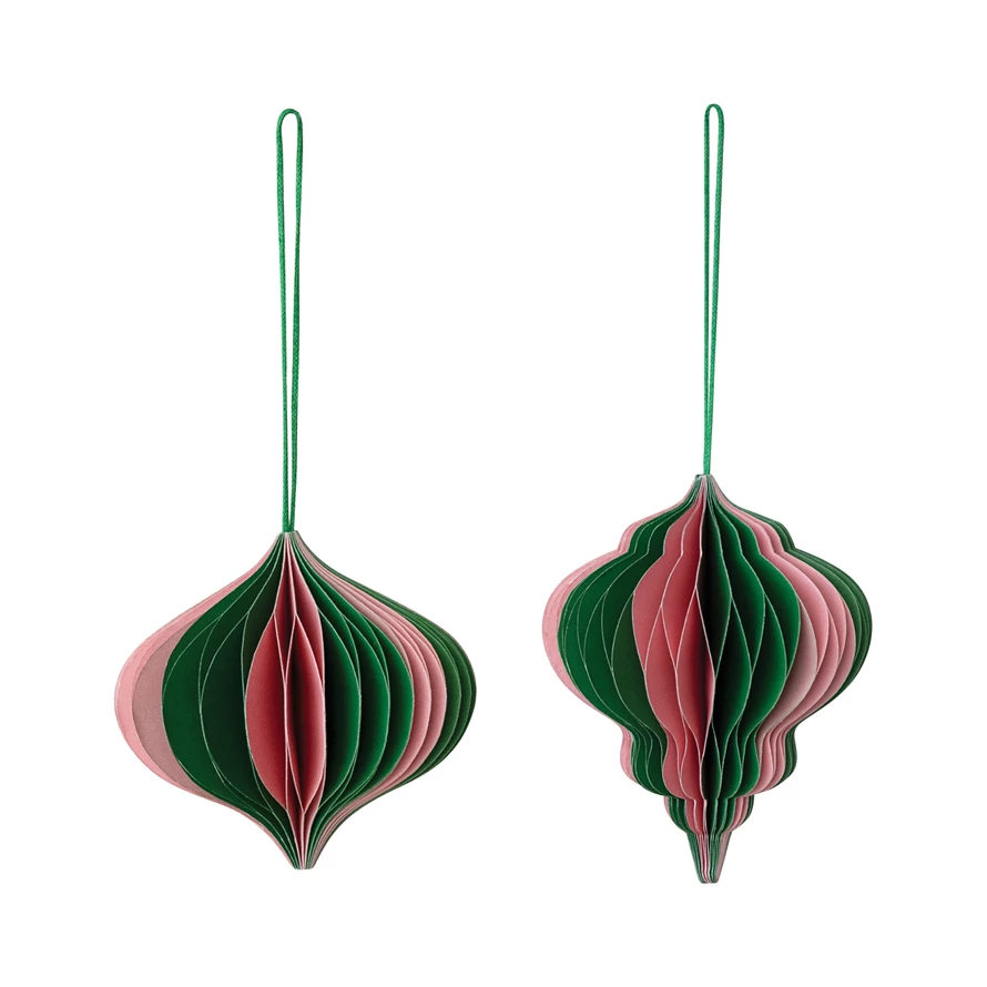 Handmade Recycled Paper Folding Honeycomb Finial Ornament, Green & Pink, 2 Styles
