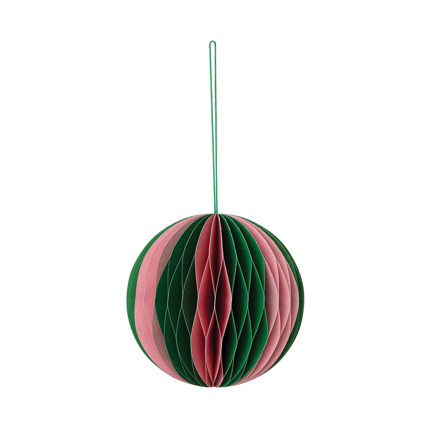 Catalog Name: 5" Round Handmade Recycled Paper Folding Honeycomb Ball Ornament, Green & Pink